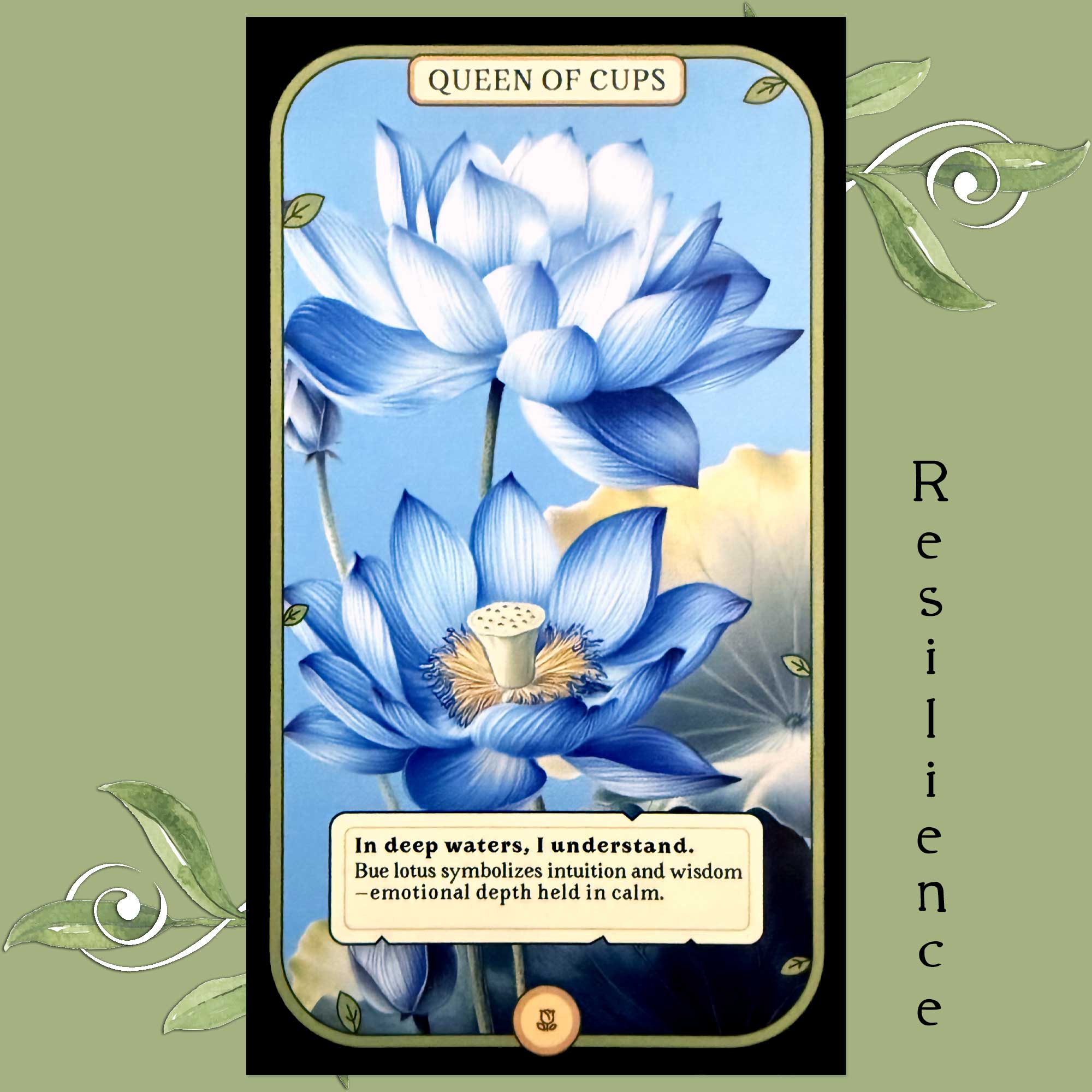 The message in today’s Queen of Cups/Blue Lotus card and “resilience” prompt is an encouragement to find someone you can unload on. Someone willing and able to lend you their ear when you need to get things off your chest and create space for you. Sometimes all we need is someone to listen. It isn’t about finding someone to solve all our problems, but finding someone willing to help just by listening and being there. If you already have this person in your life? Today’s message becomes an encouragement to utilize them. We are stronger when we’re not weighed down with our bottled up emotions… so bend their ear and let it out. You’ll feel better and stronger for having done so, and thus be more resilient to the days stresses as a result.