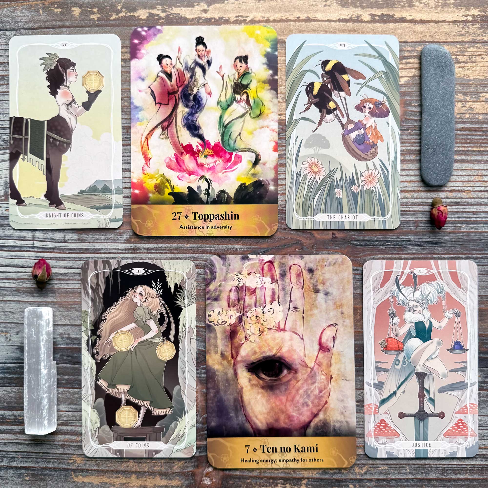 Three of Coins, Ten no Kami, Justice – Keep in mind that helping you helps them turn, so by allowing them to help more you are creating a greater balance between you and them; not (as it sometimes feels like) accruing a debt.