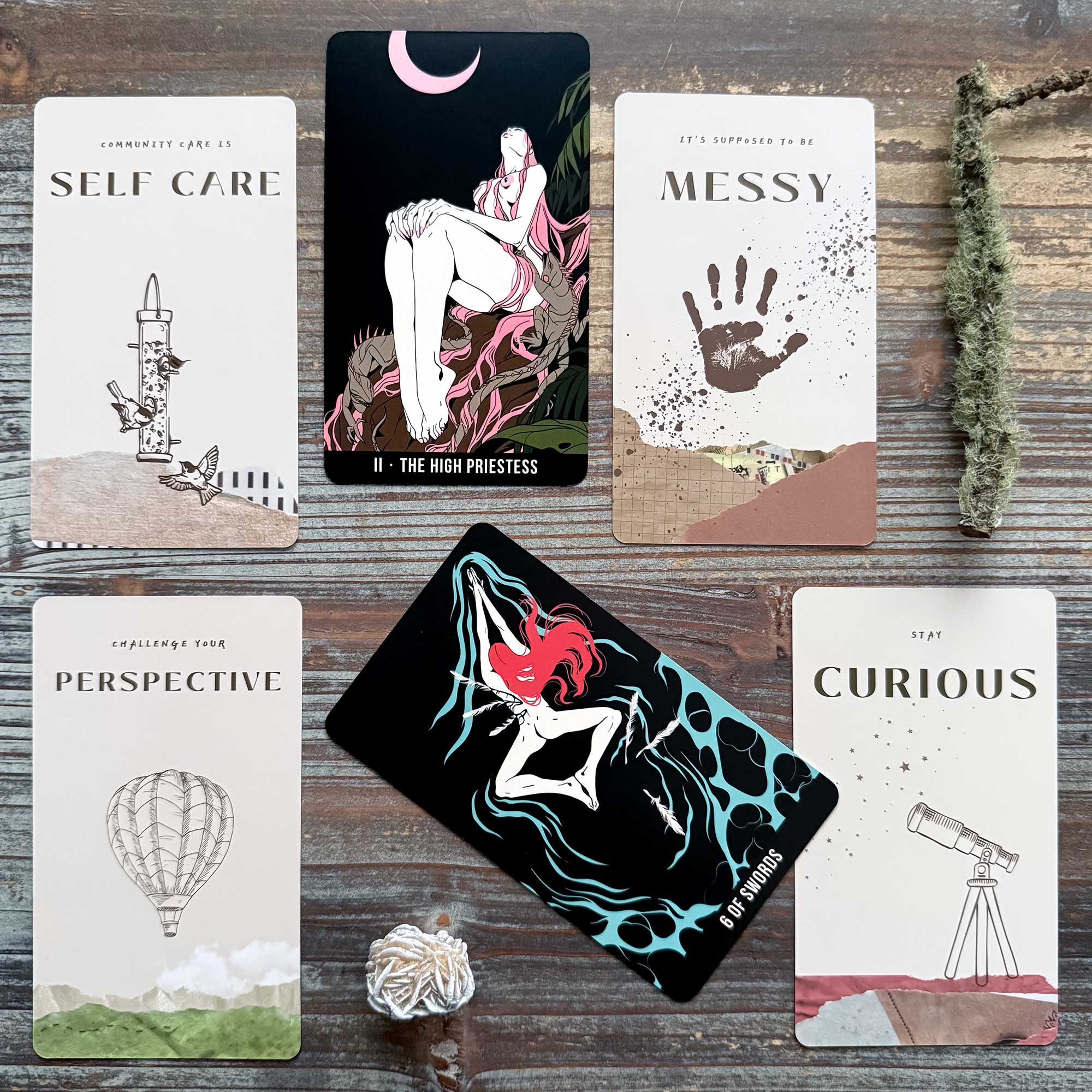 Self-Care, The High Priestess, Messy – You are so used to ignoring your own needs (or outright forgetting about them) that you have a tendency to overlook your inner messages that are trying to inform you in this area. You miss when your body, mind, or spirit try to speak up and tell you what you need most.