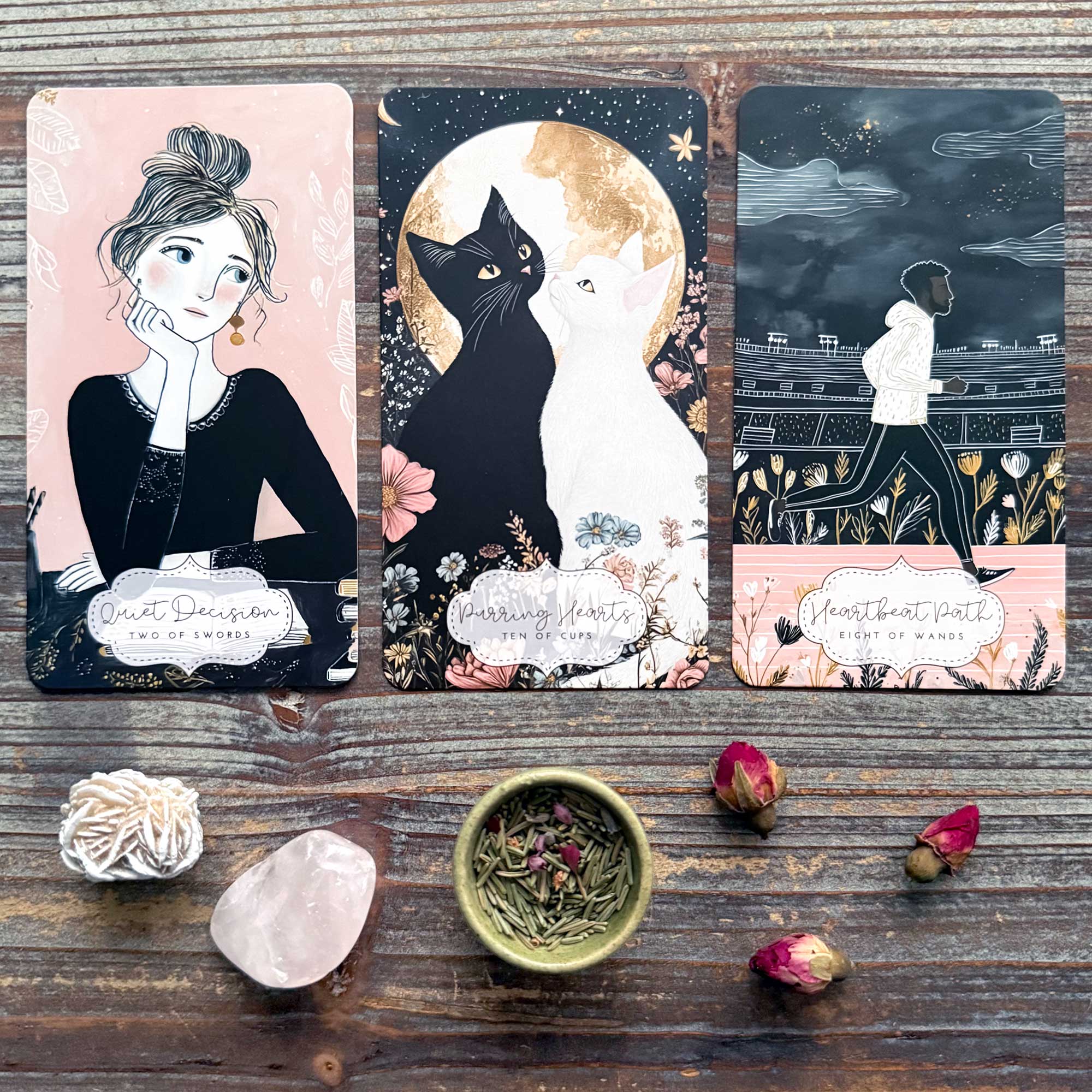 Five of Cups Rx, Knight of Pentacles, Page of Cups – You have a tendency to want (and occasionally even expect) love to feel hopeful and encouraging, slow and stable, with a spark of imagination. A safe place to feel your emotions and share them with others where they (and you) will be supported.