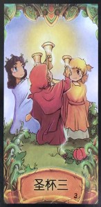 The Three of Cups is a”live in the moment” card. It is all about finding that “groove” with others and reveling in it. In fact, it has a bit of a hint of revelry to it all on its own.