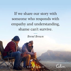 I do not agree with the quote given in today’s guided meditation, though. I do not thin that sharing your shame with a sympathetic and empathetic ear will miraculously make it disappear. Shame, especially that caused by trauma, just doesn’t heal up that quickly or that easily. At least, not in my experience.