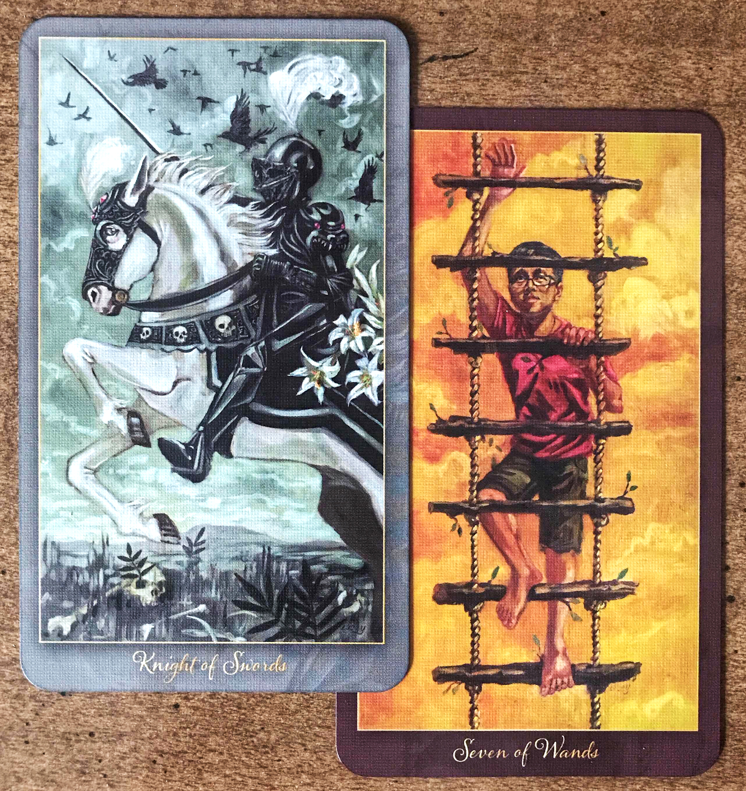 Slow TarotToday’s draw is the Seven of Wands with the Knight of Swords as a jumper.  This is all about motivation and drive and being proactive about my goals.
