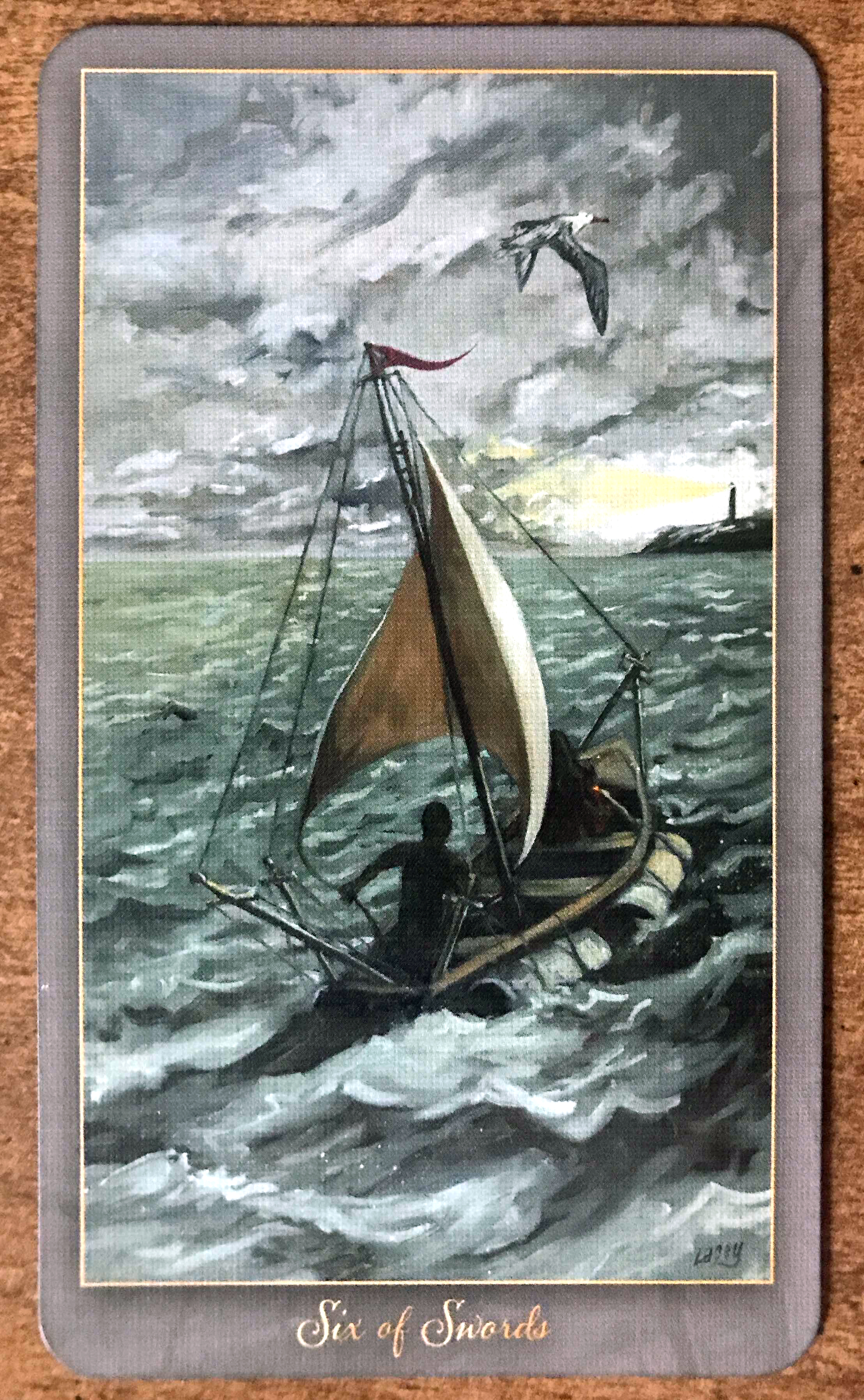 Today’s draw is the Six of Swords, which (among other things) is a representation of transitions and letting go in the areas of intellect and communication. This often expresses itself in themes to do with moving on to greener pastures and leaving difficulties behind in the past.