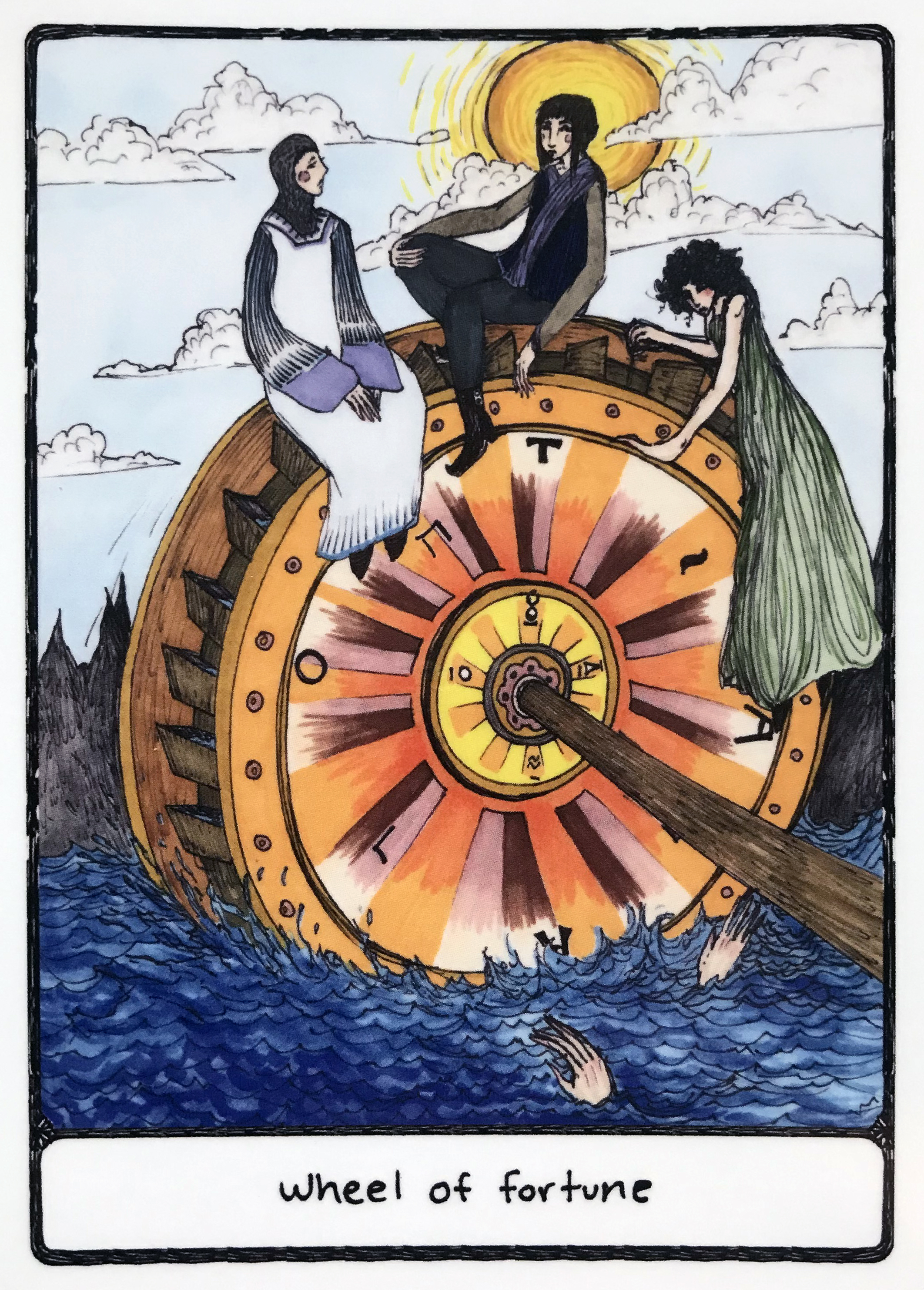 This card’s traditional meanings deal with the ups and downs of life, and with luck (both good and bad). It can also mean a turning point as well as a resistance to change, and I’m starting to think that the stalking aspect of the card during this time of year has to do with those latter meanings rather than the former ones.