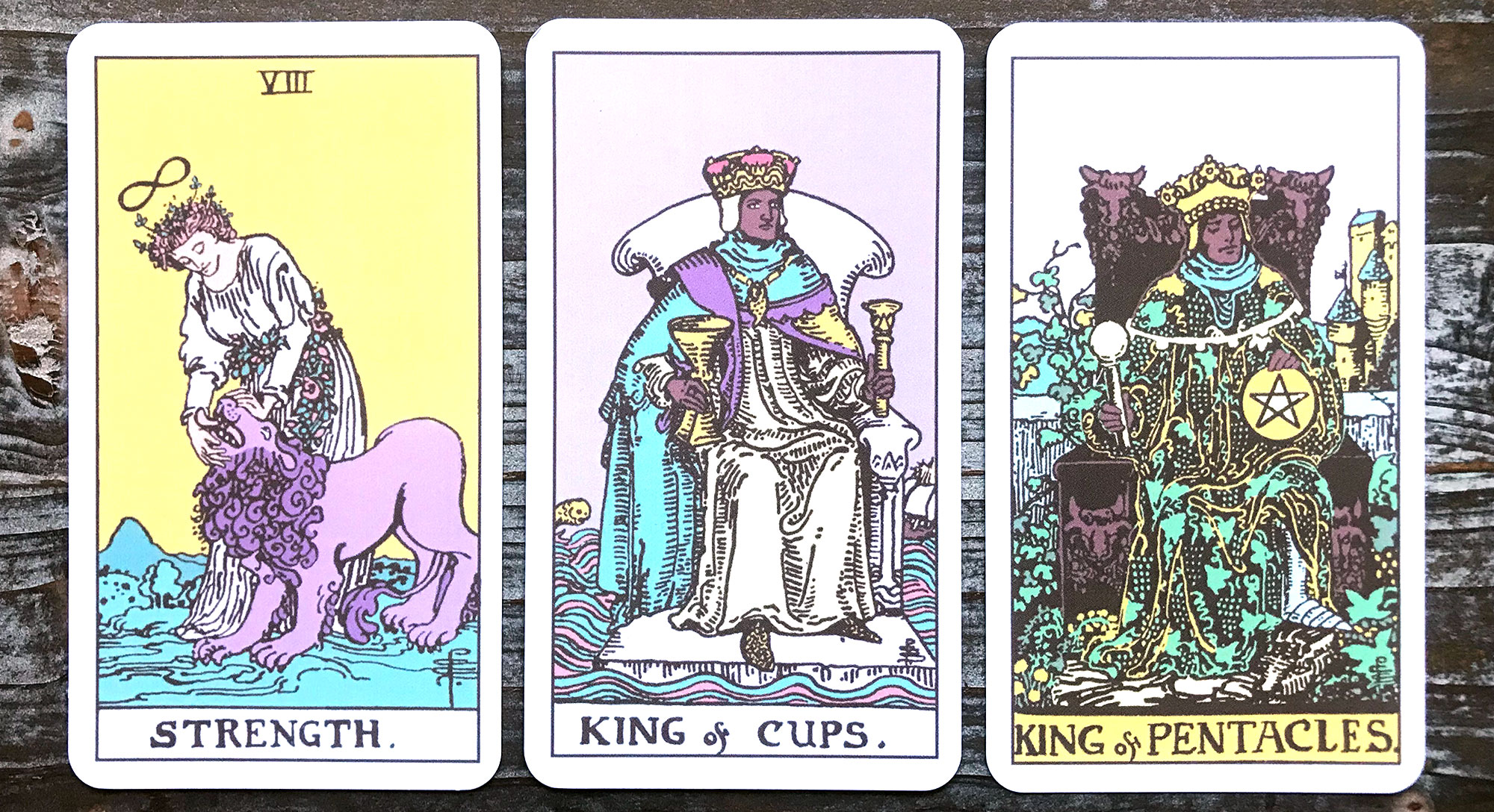 Take Away: These cards indicate that my emotional strength at this time lies in my ability to keep myself from picking at negative thoughts and being unkind to myself. A lot of times when I sense my own vulnerability, I will react by attacking, but the cards indicate that for true emotional strength, I need to see these moments as a time to reassess and find balance rather than allowing myself to fall into bad habits.