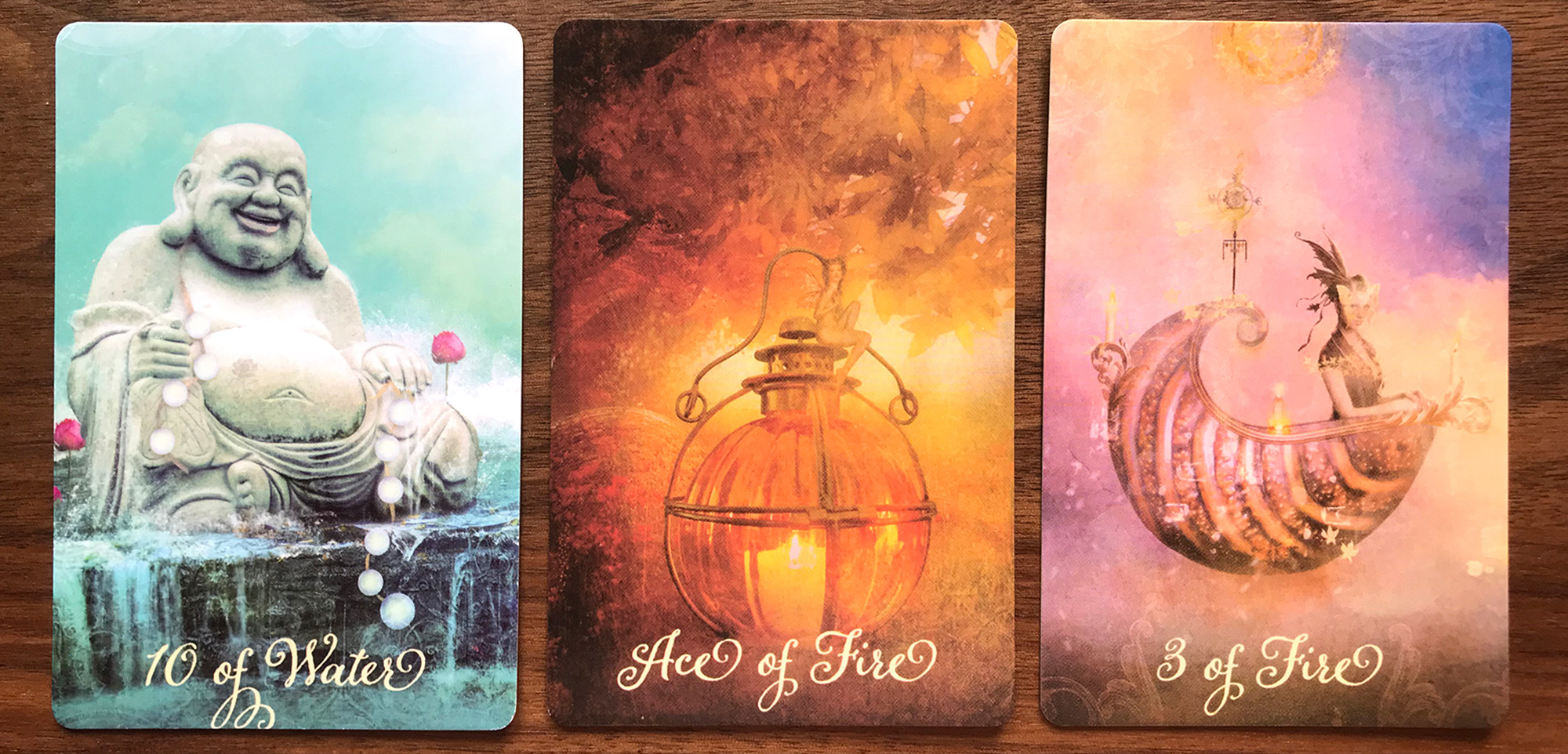 Reading Summary: Emotional well-being (Ten of Water) and passion projects (Ace of Fire) where a better sense of direction (Three of Fire) is needed.