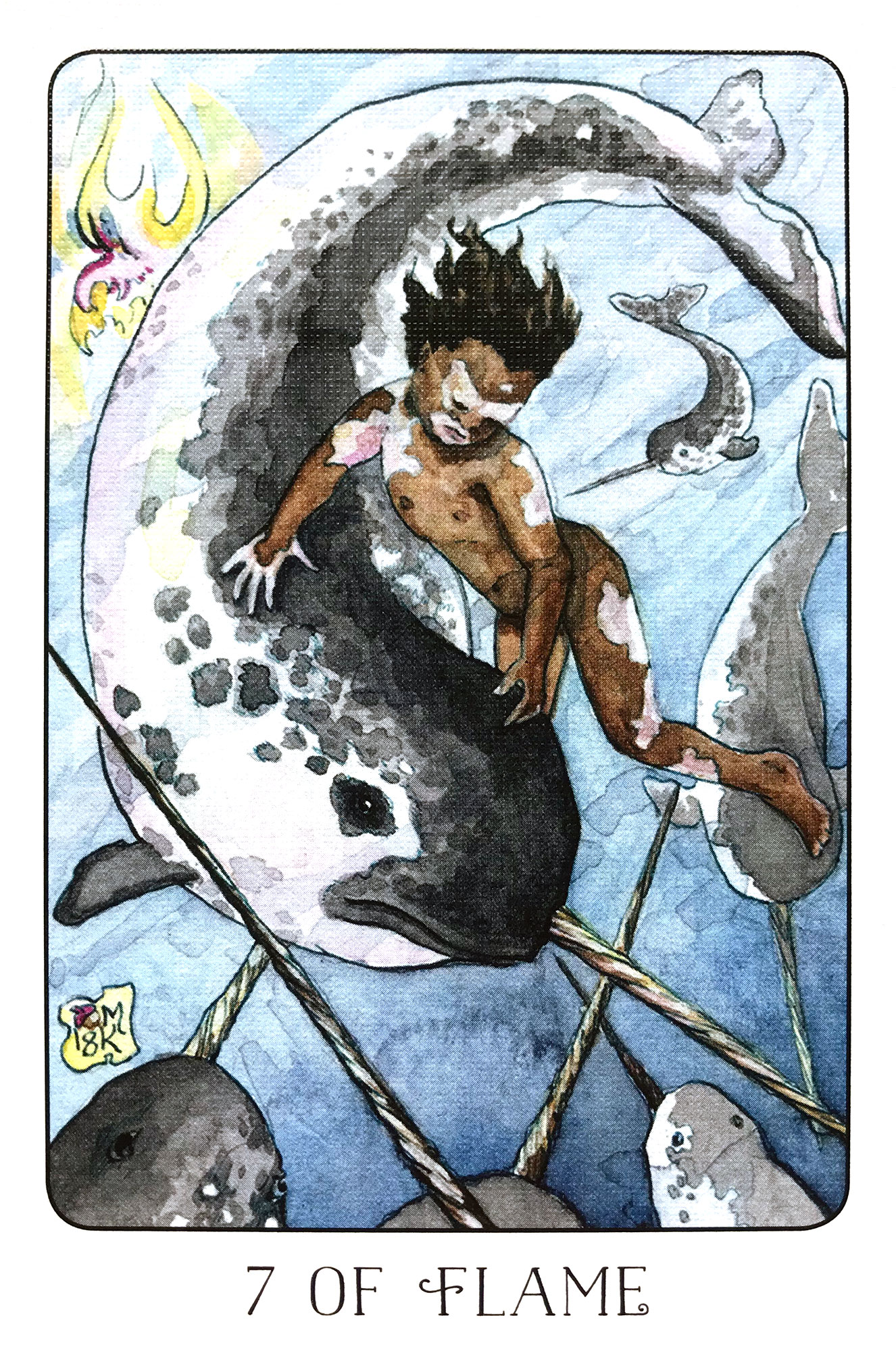 What really stood out to me in this card’s imagery today has to do with the tender flesh of the child among all those long, sharp tusks. And yet the child remains unharmed even as the narwhal swim and circle. It speaks to me of treading lightly so that you don’t hurt those more vulnerable than yourself.