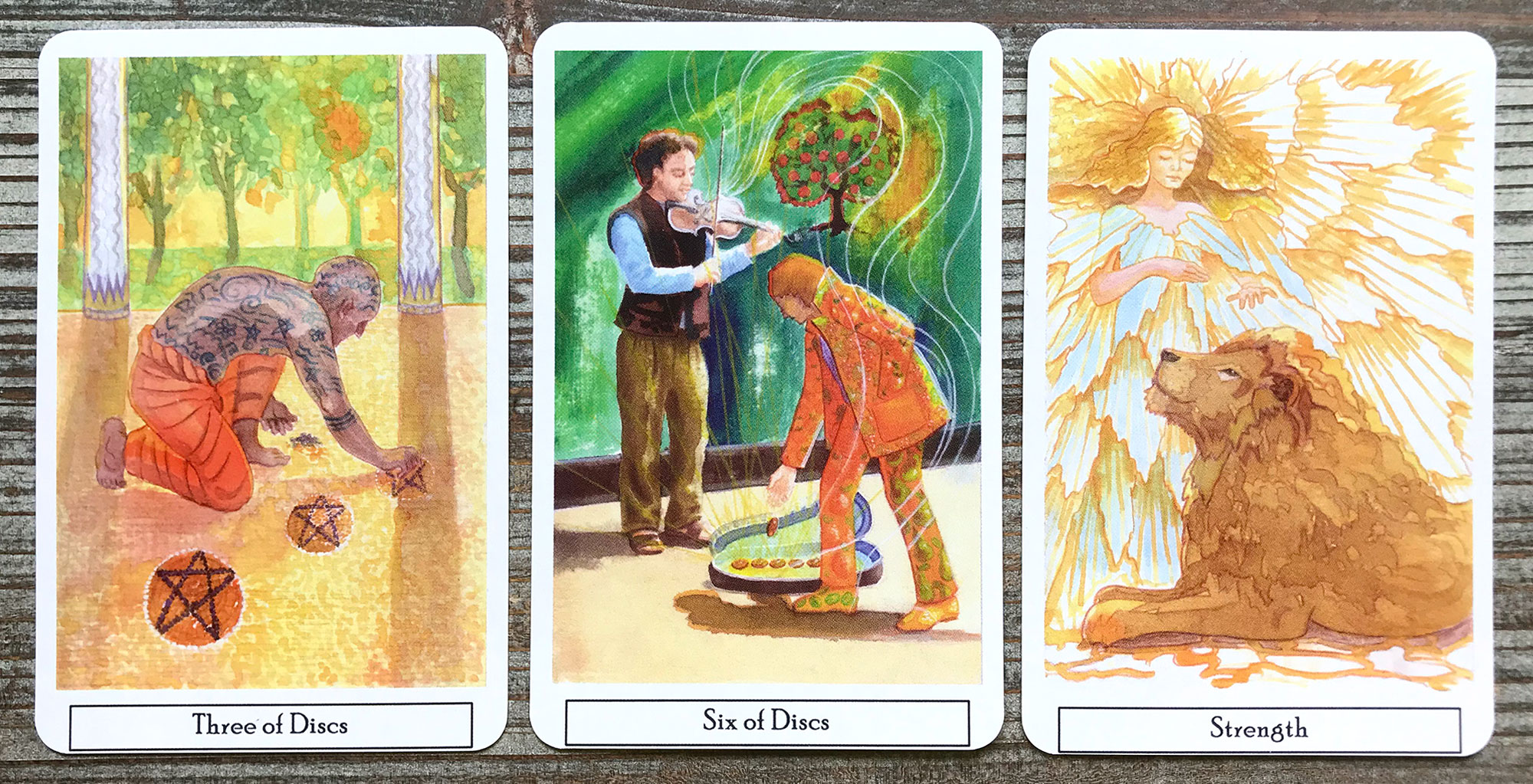 Reading Summary: I spend too much time working alone (Three of Discs). I need to accept the help of others more readily, and will gain more strength as a result (Strength).