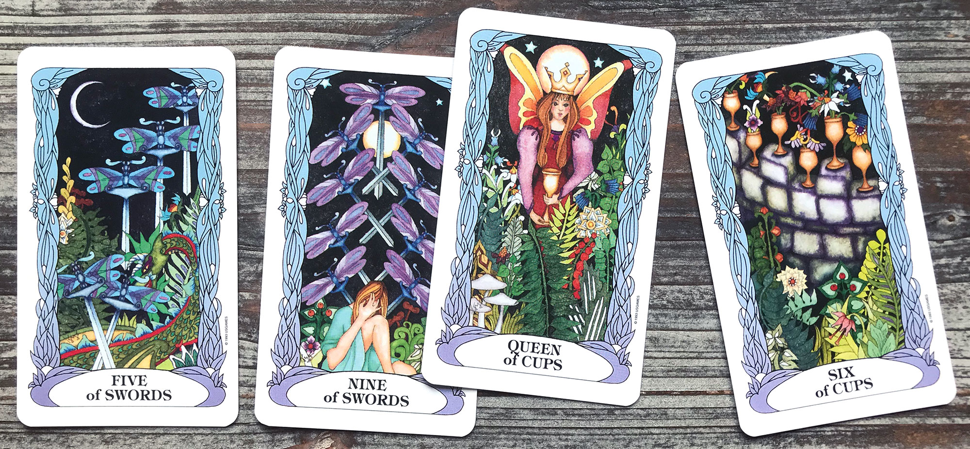 Reading Summary: It is self defeating (Five of Swords) to intellectualize (Nine of Swords) your emotions so much (Queen of Cups). Set them free and allow them to find their own way (Six of Cups).