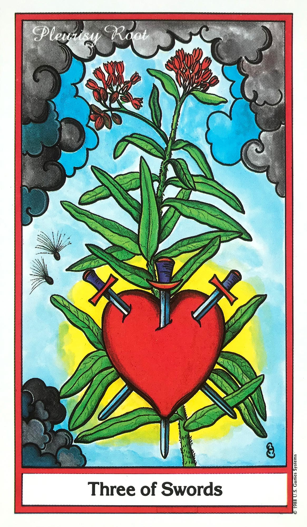 I used to feel that the Sword suit was a strange place for this card, as the Swords are supposed to be about thought, intellect, and communication. But, over time I’ve come to understand that it is not the heart or the emotions that spur these feelings represented in the card. Instead, it is the mind that spur these feelings… and the heart that then feels them. Since the feelings are spawned from the mind, it then makes sense to me that they are in the Sword suit.