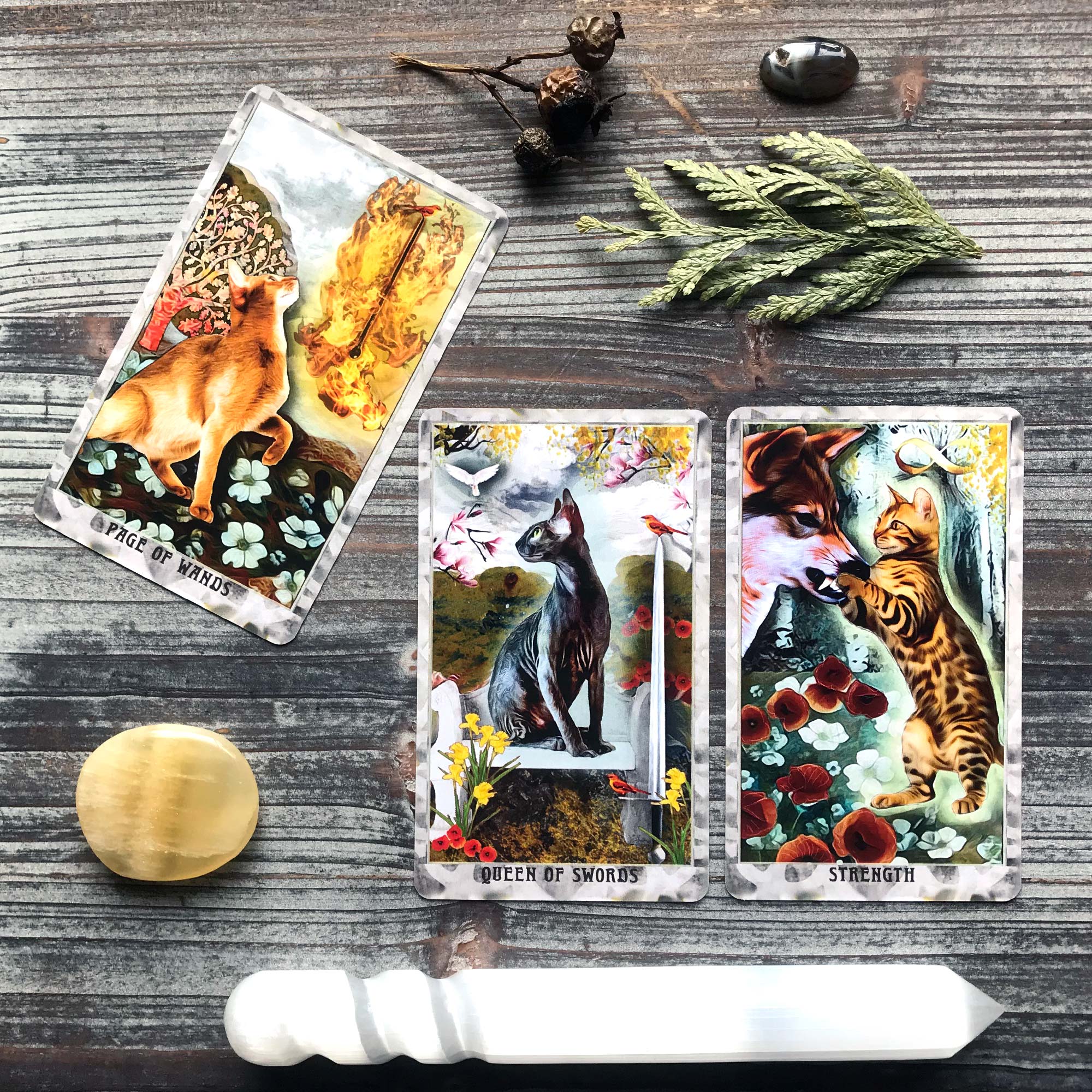 Reading Summary: Develop new ways to incorporate your current passions and your creative spark into more of your life (Page of Wands), and work at keeping your inner critic in check (ignoring the red bird in favor of the dove in the Queen of Swords). You’re strong enough to make these changes (Strength).