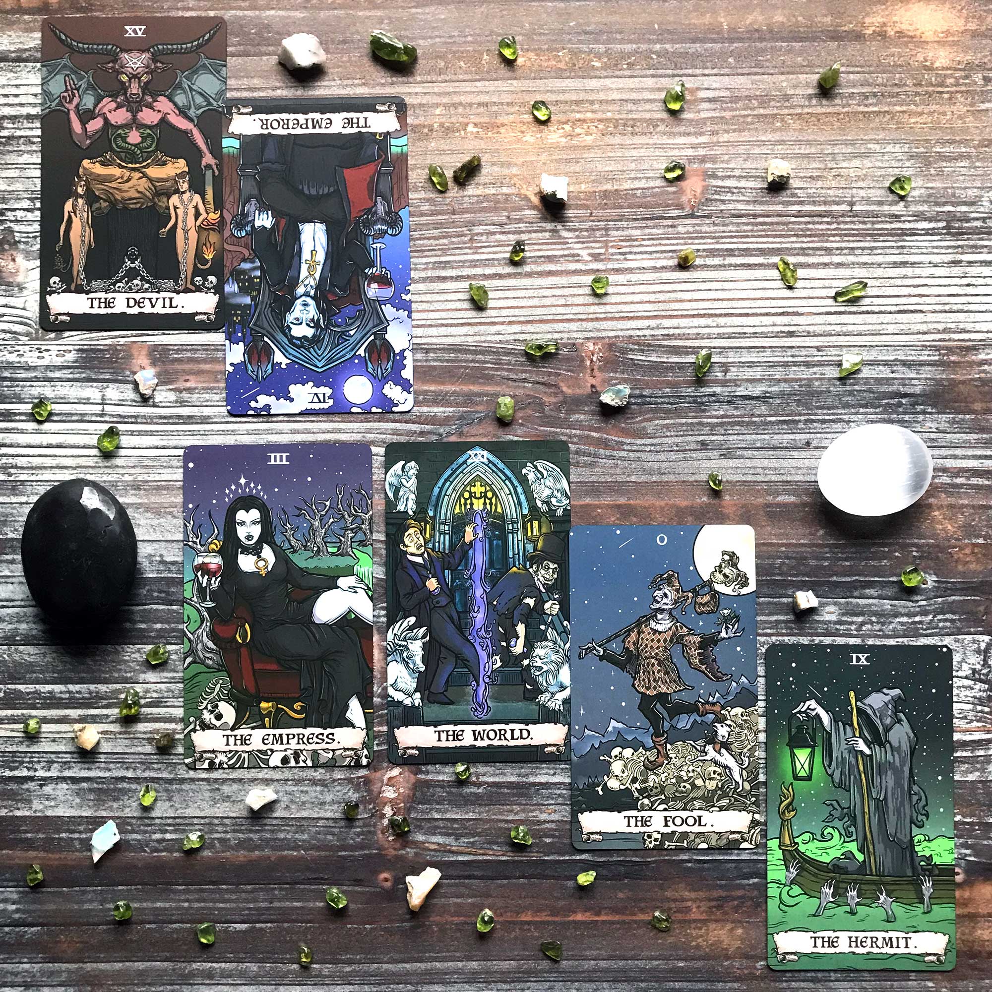 Terror TarotGordie spent his life so wrapped up in his addictions (The Devil) to the point that he no longer had any control over his life or his surroundings (The Emperor Rx).  He fell into one habit and addiction after another, lead astray by other’s whims and his own temptations again and again until one day his body decided that it had had enough and he died.