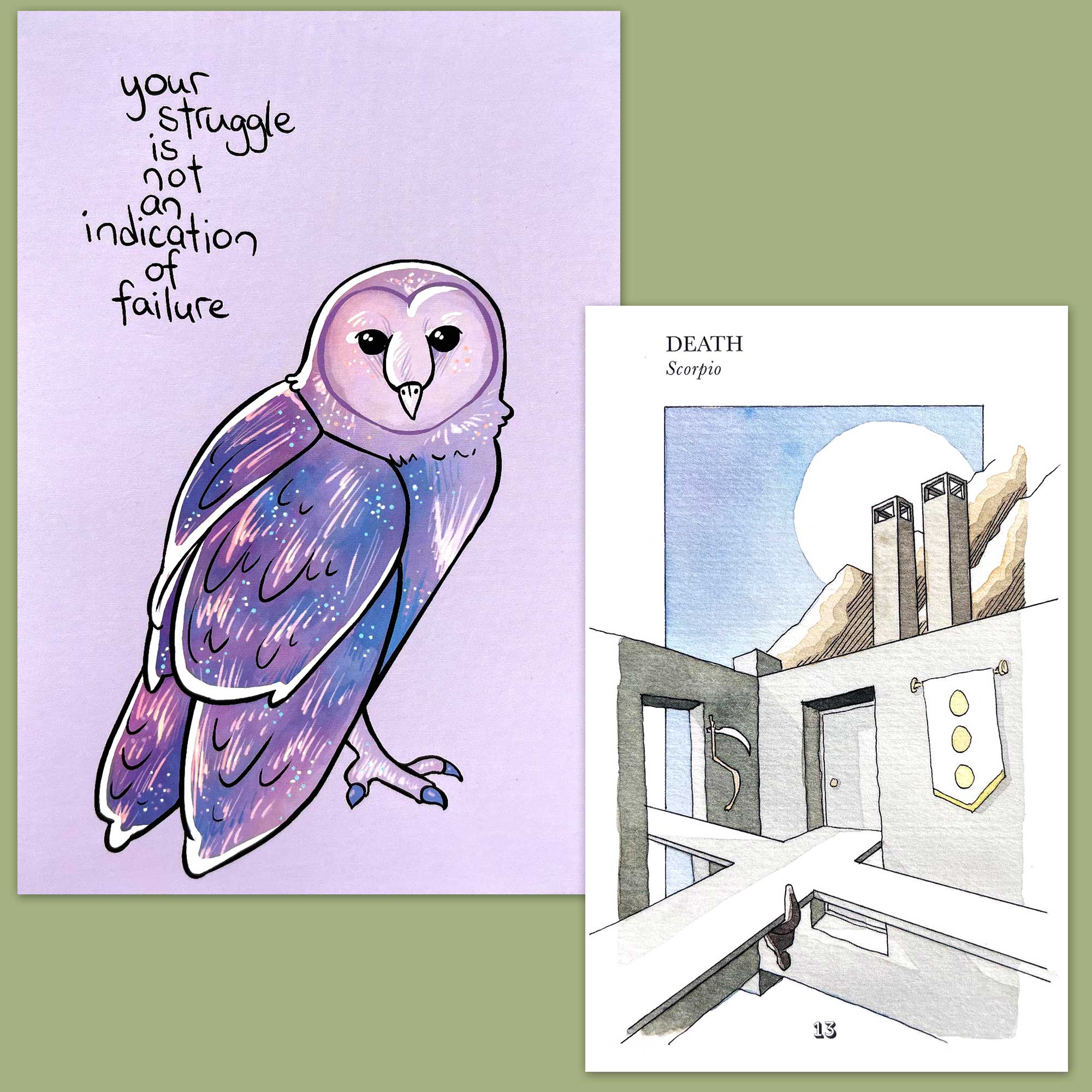 I really like the Eischer-esque feel of this card with the open walkway and the figure of a person sitting inverted upon it. It gives everything a slightly surreal quality that is a reflection of how odd things can feel when you realize a change has been coming and is now upon you.
