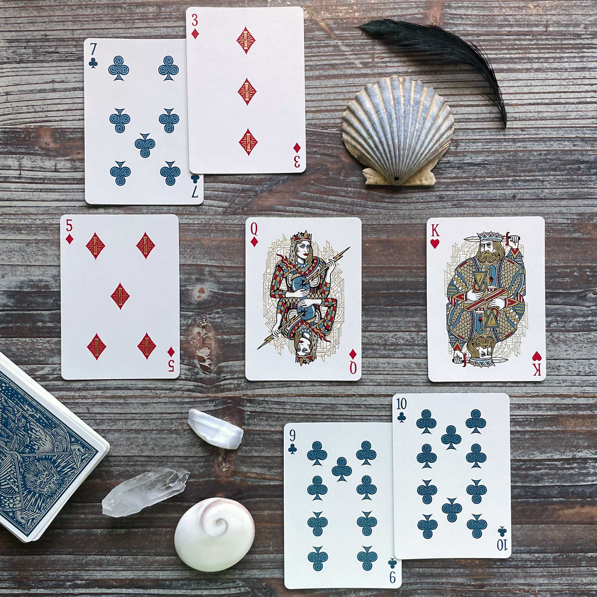 Three of Diamonds atop Seven of Clubs