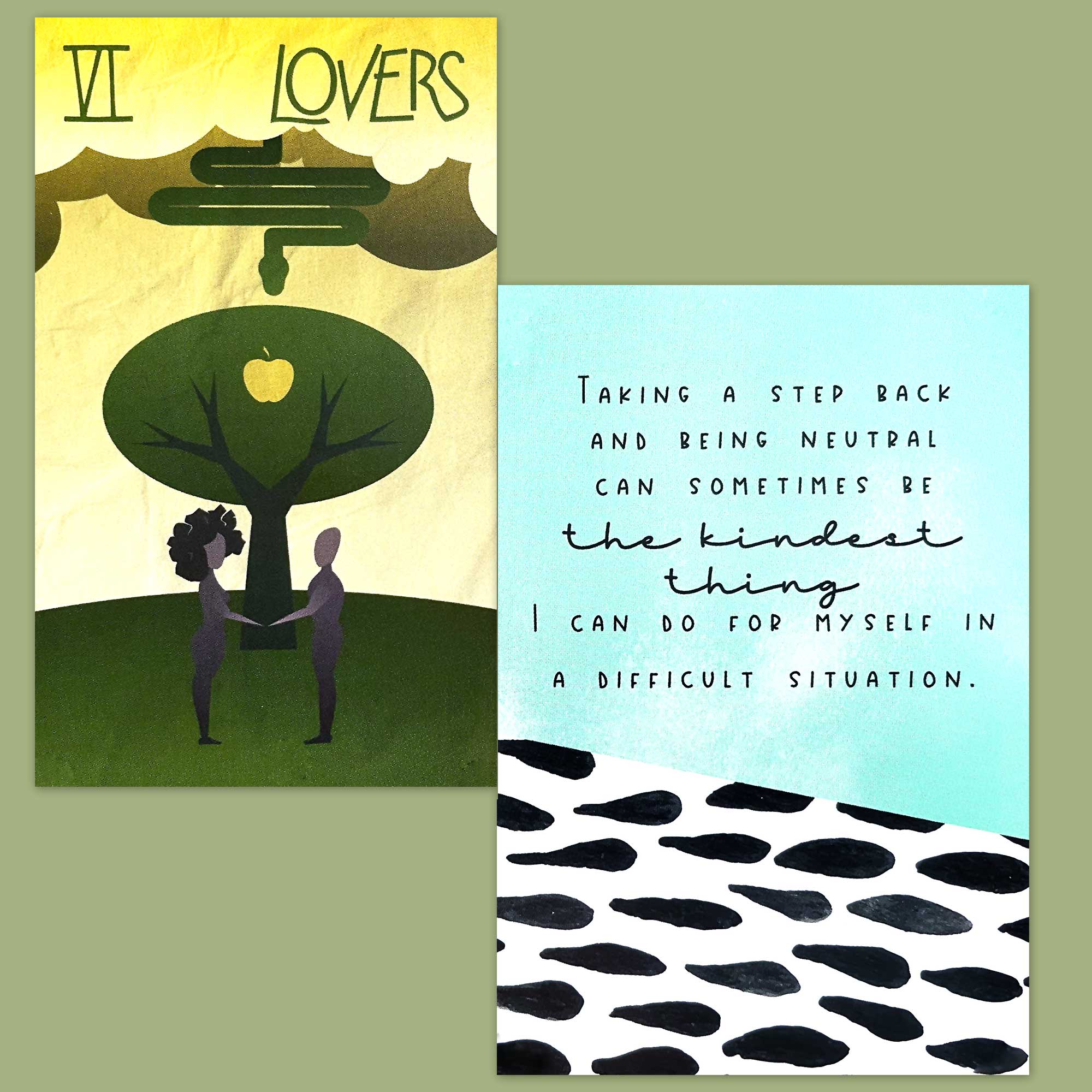 The Lovers card combined with this affirmation card is a reminder that sometimes the only way you can find a healthy option for yourself is by separating yourself from the situation and looking at it from the outside. Sometimes only with an unbiased vantage point can you find clarity.
