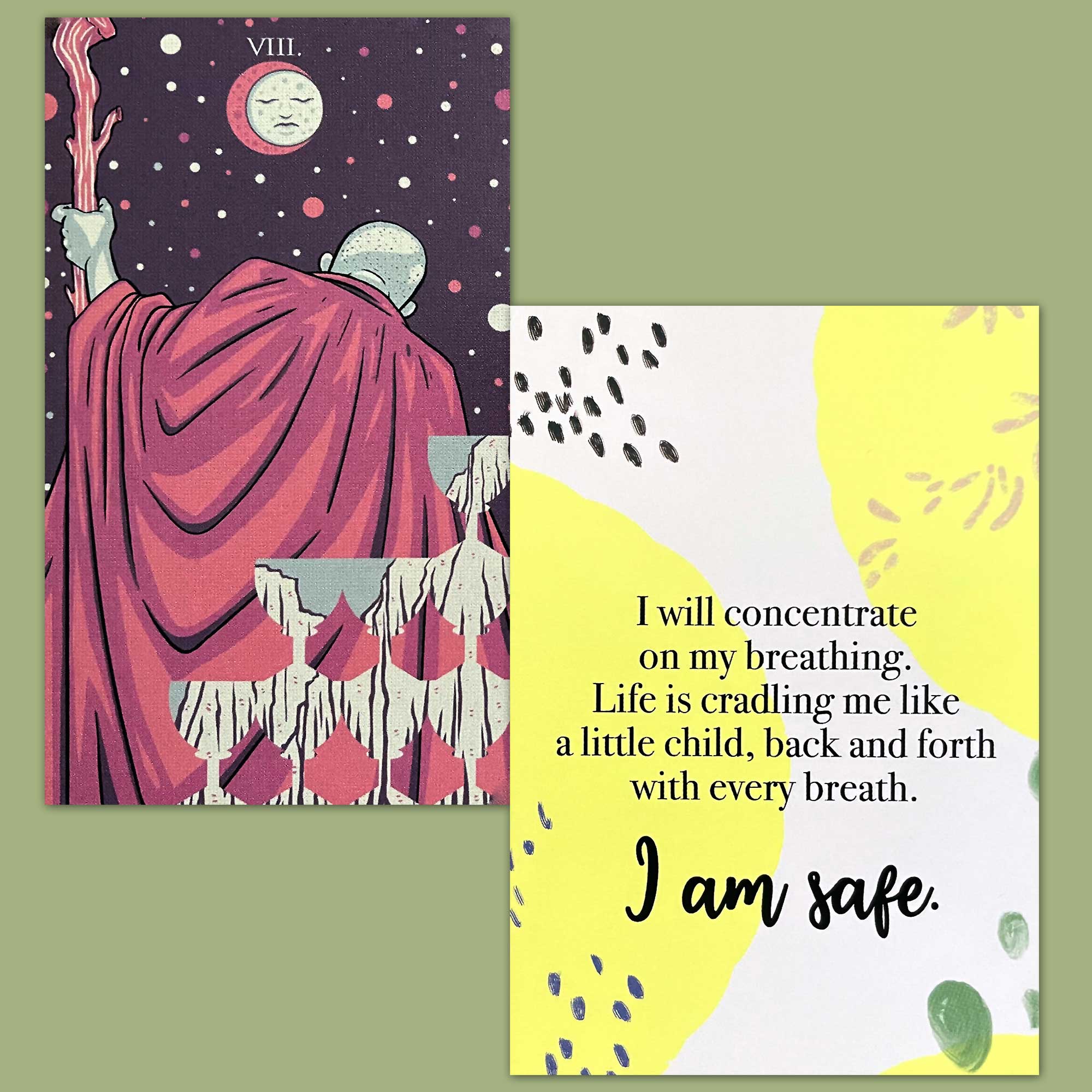 The addition of the affirmation card for today provides guidance for these situations, providing a reminder that when you are treading into unfamiliar territory and dealing with the uncertainties of what you’re leaving behind, that it’s important to center yourself, and that breath work is an excellent way to do this.