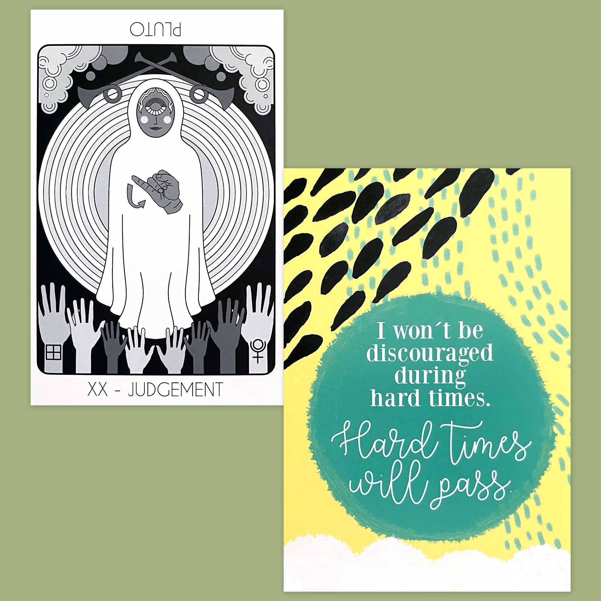 I’ve mentioned this before, but this used to be the card within the tarot that I struggled with the most. Then, a couple of years ago, I attended a card study where the Justice and Judgement cards were set in a comparative focus. In this study, these cards were presented as Justice being the immediate, present-day balance of cause and effect (which was how I viewed it anyway), and that in contrast, the Judgement card was about what you’ve done with your life as a whole. How is your life path going? Is it going in a way that you like? Are you happy with the person you’ve become and how you live your life and see the world?
