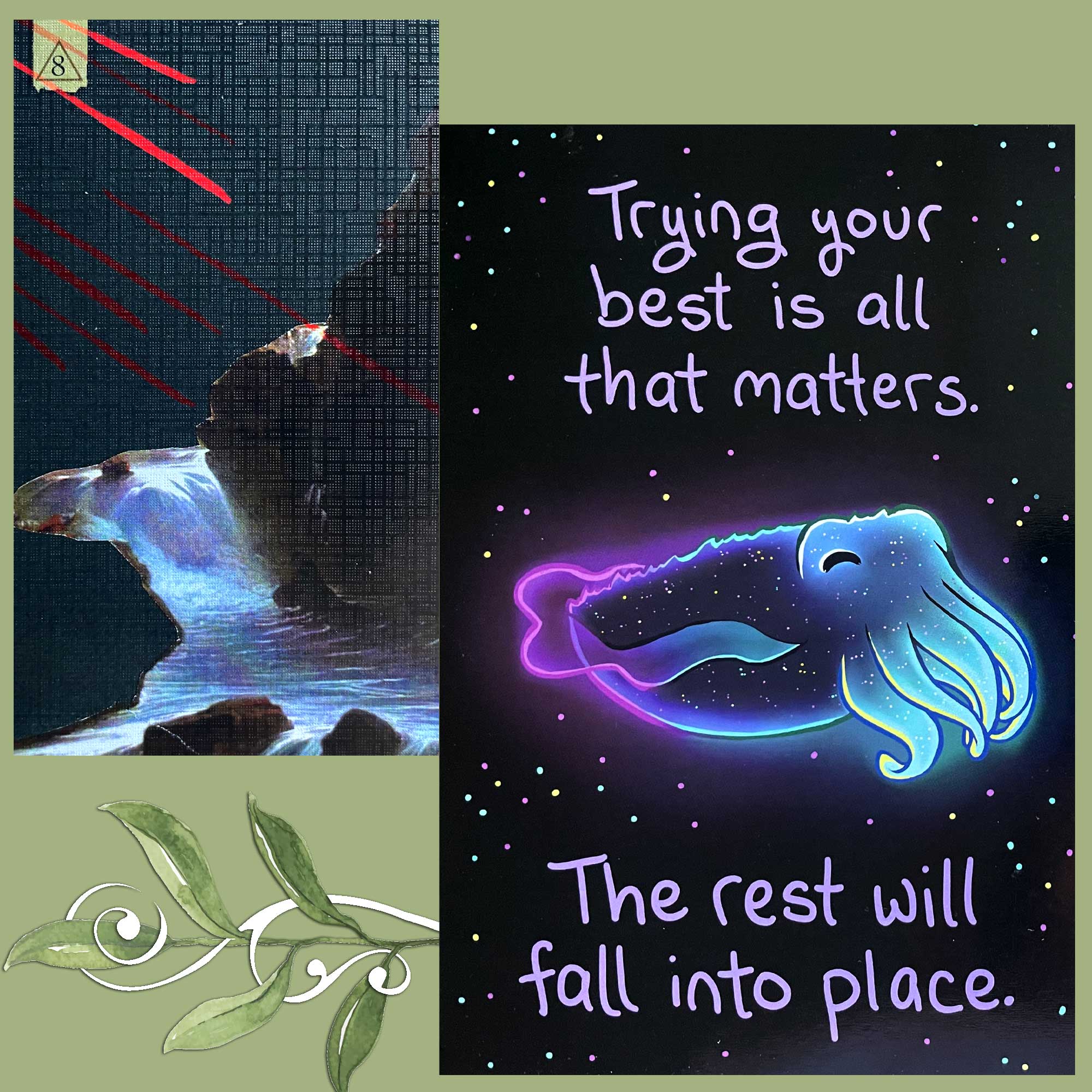 Better to be patient with yourself and just do what you can. As the card says… the rest will fall into place. And by not abusing yourself with expectations beyond your comfort zone. You’ll be happier in the end, and it’s far less stressful that way.