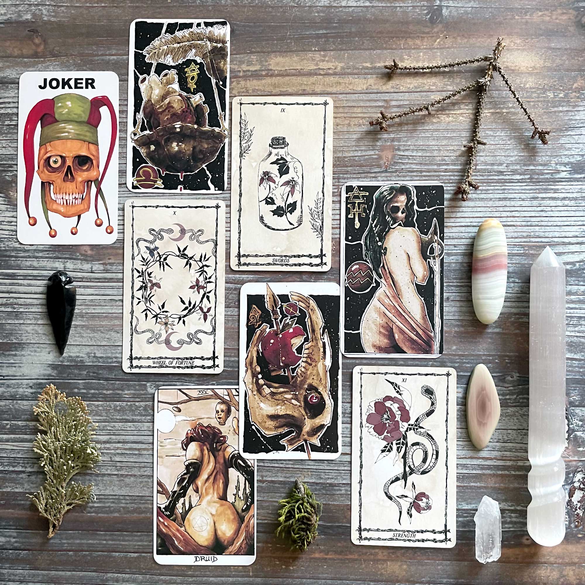 DECK USED: THE PULP OF TAROT EXPANSION CARD PACKS AND OPHIDIA ROSA BOTANICAL TAROT
