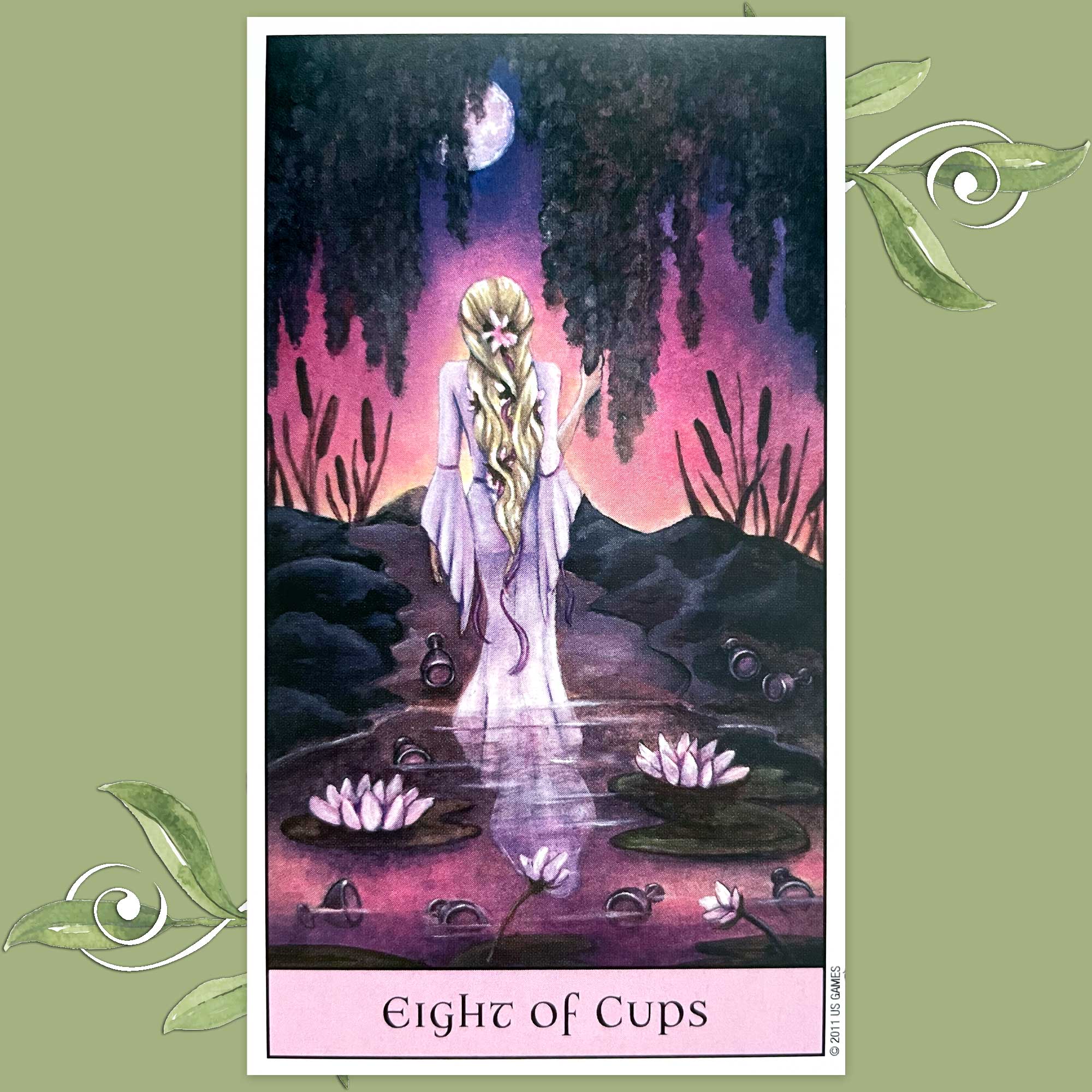 Today’s draw is the Eight of Cups, which is traditionally a representation of moving on in the face of disappointment, abandonment, giving up out of frustration, and walking away.