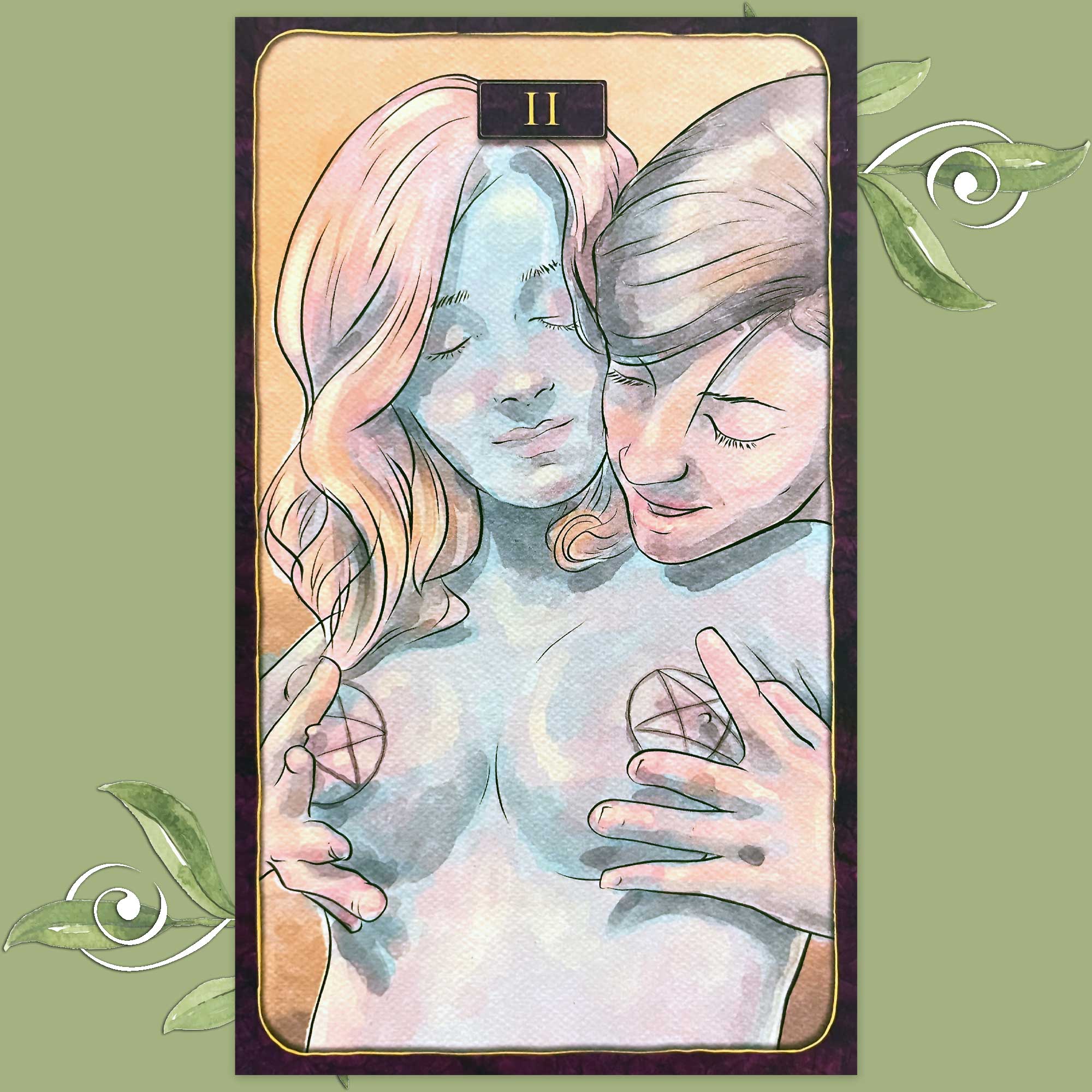 The imagery in this card absolutely says to me “both need equal attention”. Not that I’ve been with a woman in… well, a really long time now. Gideon and I have been together going on 14 years, so at least a bit longer than that. But, in my experience? When it comes to pleasure, foreplay, and breasts… both need equal attention.