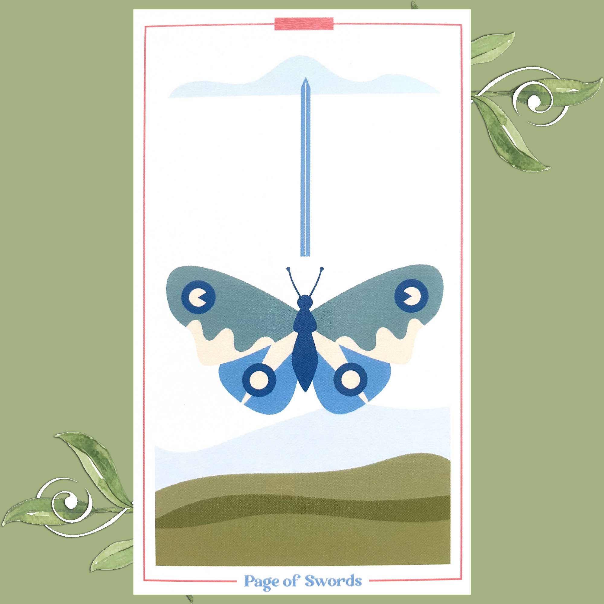 I feel like there is direction in this card far more than in the traditional imagery of the Page of Swords. The sword in this card appears to point the way forward to greater heights, and that is where the message in this card lies.