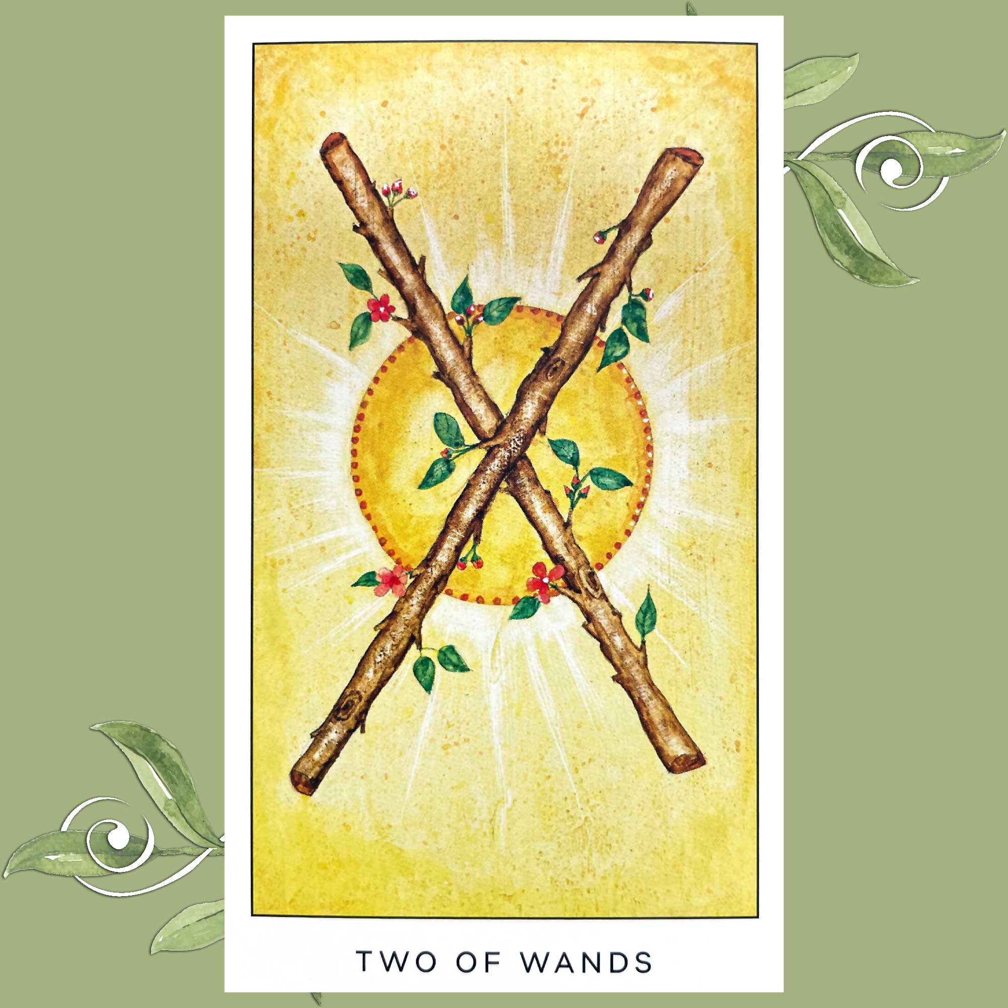 Today’s draw is the Two of Wands, which is traditionally a representation of making plans, plotting a course, preparation and looking ahead, and making decisions for one’s future.
