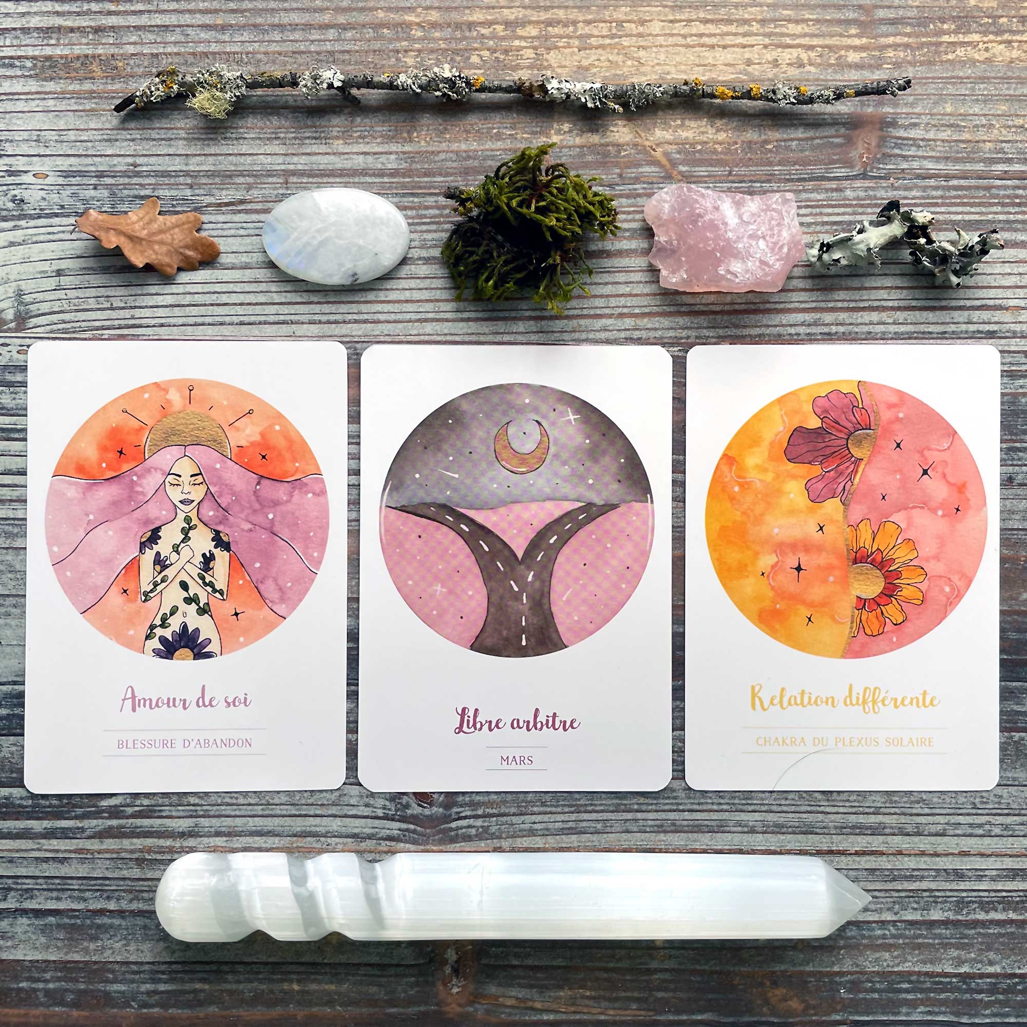 Reading Summary: You need to take some time this full moon to look at what inner wounds you are continuing to hold onto (Amour de Soi), and take action to move past them (Libre Arbitre) so that you can embrace a healthier and more growth positive relationship with yourself and the world around you (Relation Différente).