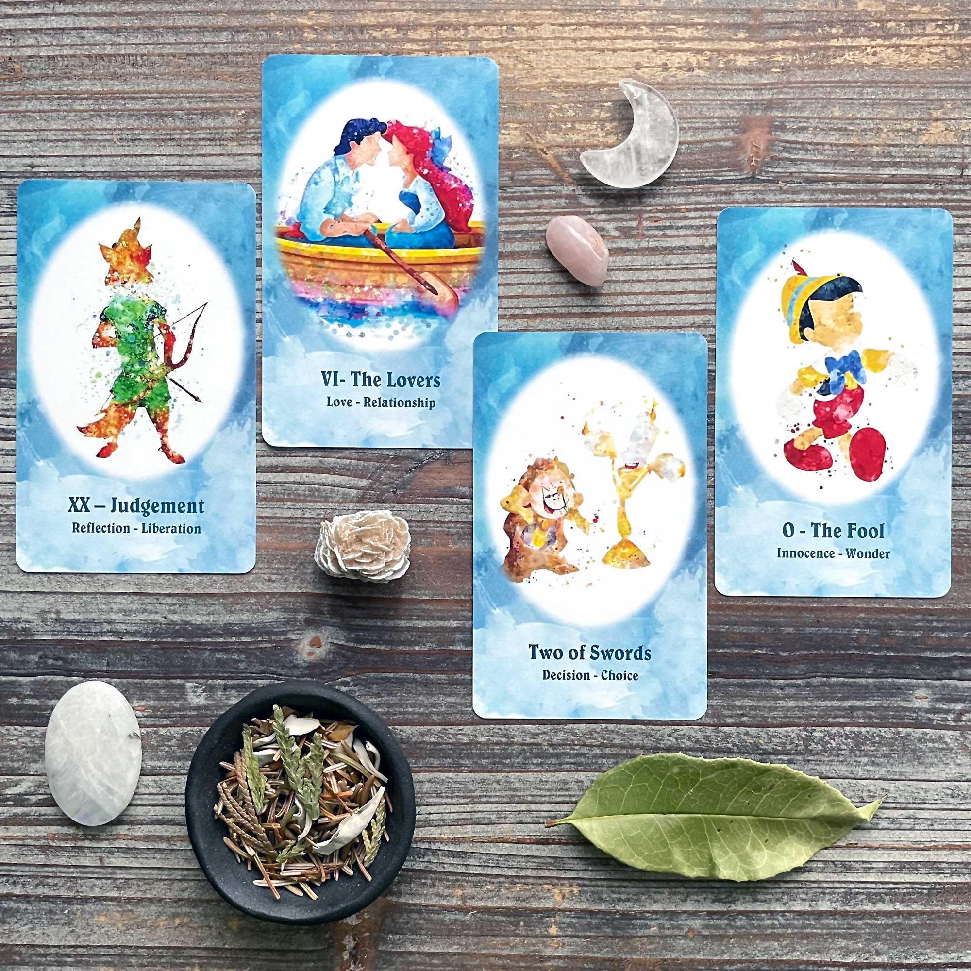 Research is a part of skill development. To be fair, I would usually consider Bella from Beauty and the Beast to be of the Swords suit, as she was very an intellectual in nature. That said… research is absolutely a part of developing a skill and furthering that skill into an expertise, and that is what we see here in the imagery for this card.