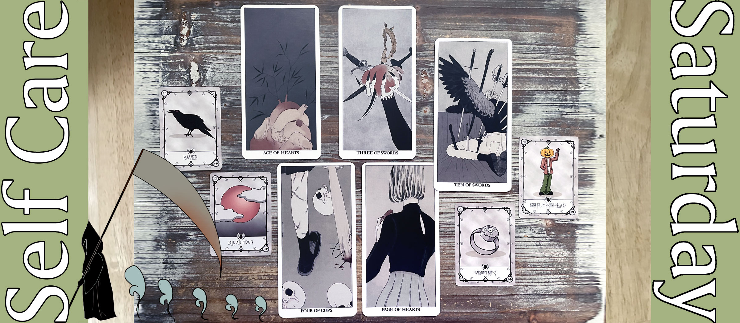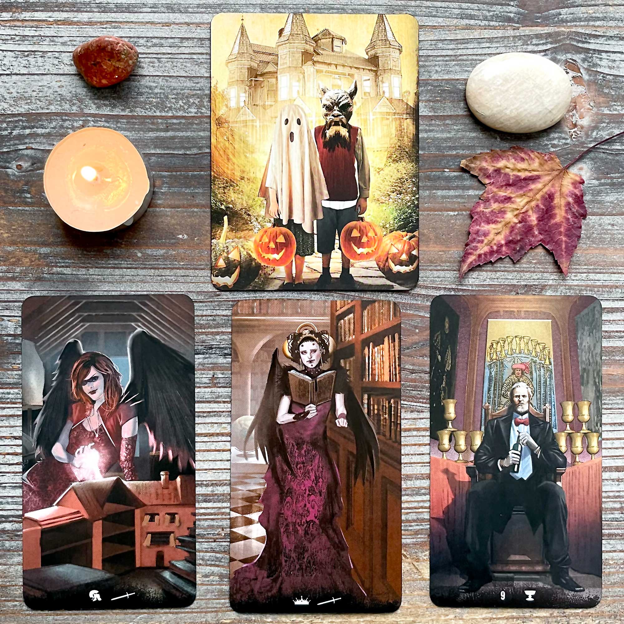 DECKS USED: HALLOWEEN ORACLE (trimmed naked) AND TAROT OF HAUNTED HOUSE