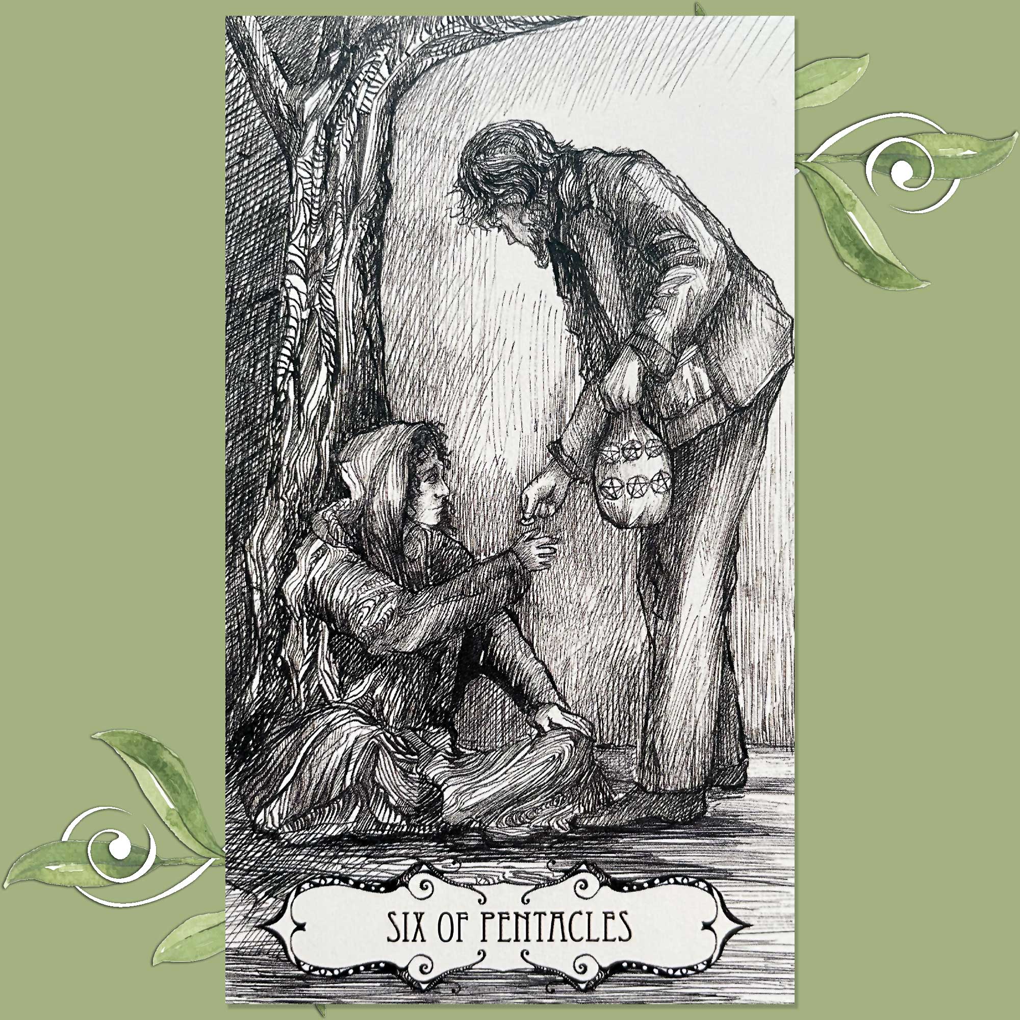 Today’s draw is the Six of Pentacles, which is traditionally a representation of generosity, charity, good will, and asking for/accepting help.