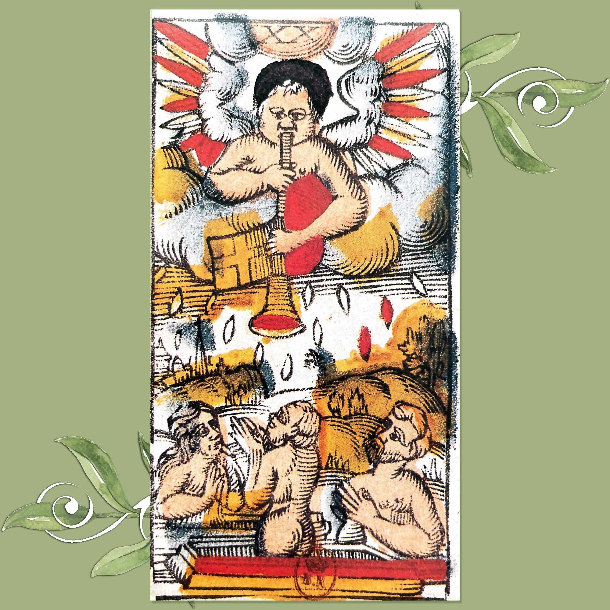 Today’s draw is the Judgement card, which is traditionally a representation of looking back on one’s history and reflecting upon if they are happy with all that they have done and become in life, as well as getting in touch with one’s true calling, and themes to do with forgiveness and absolution.