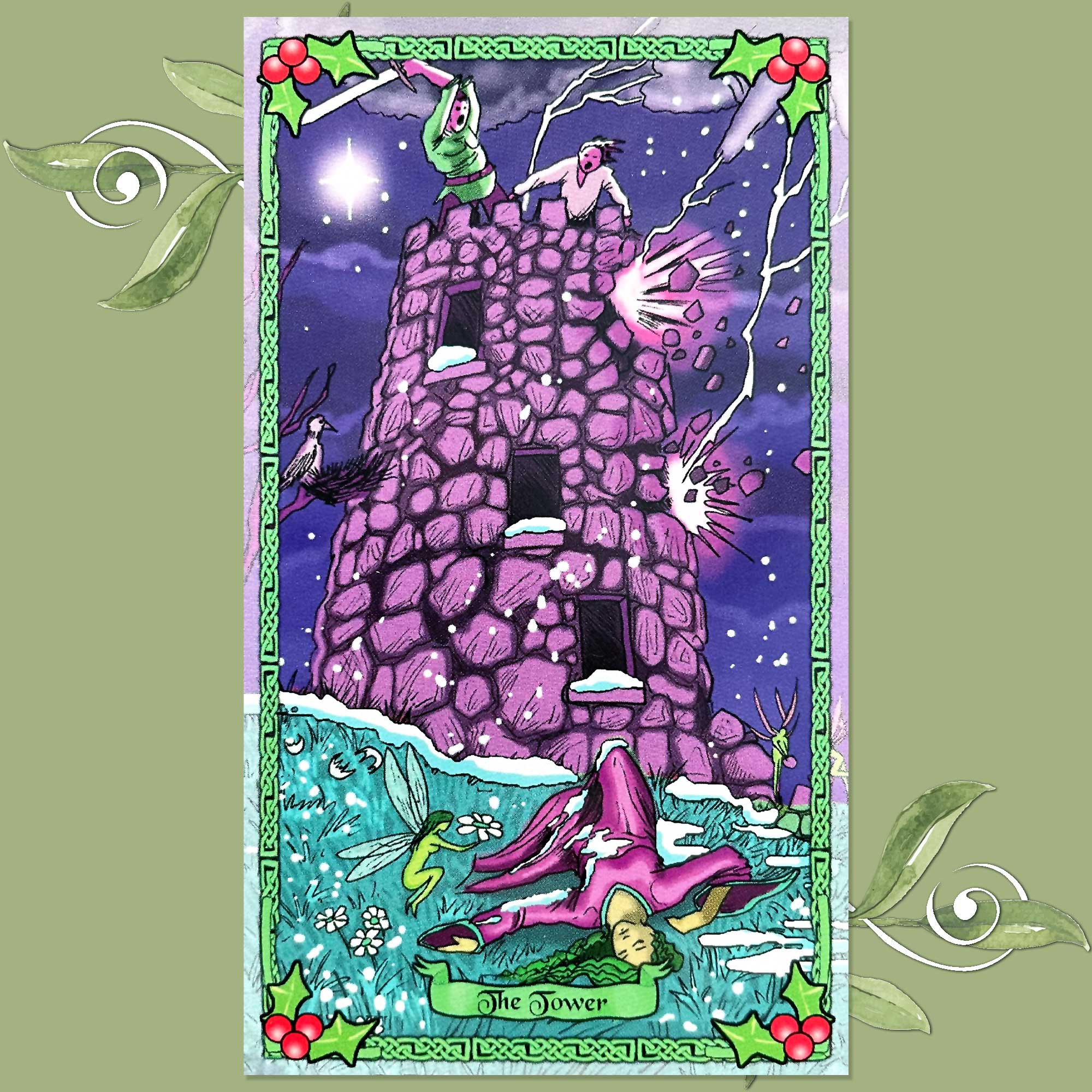 Today’s draw is the Tower card, which is traditionally a representation of chaos, sudden change, disruptions to the status quo, tearing down of established constructs, upheaval and the awakenings that can be born from it.