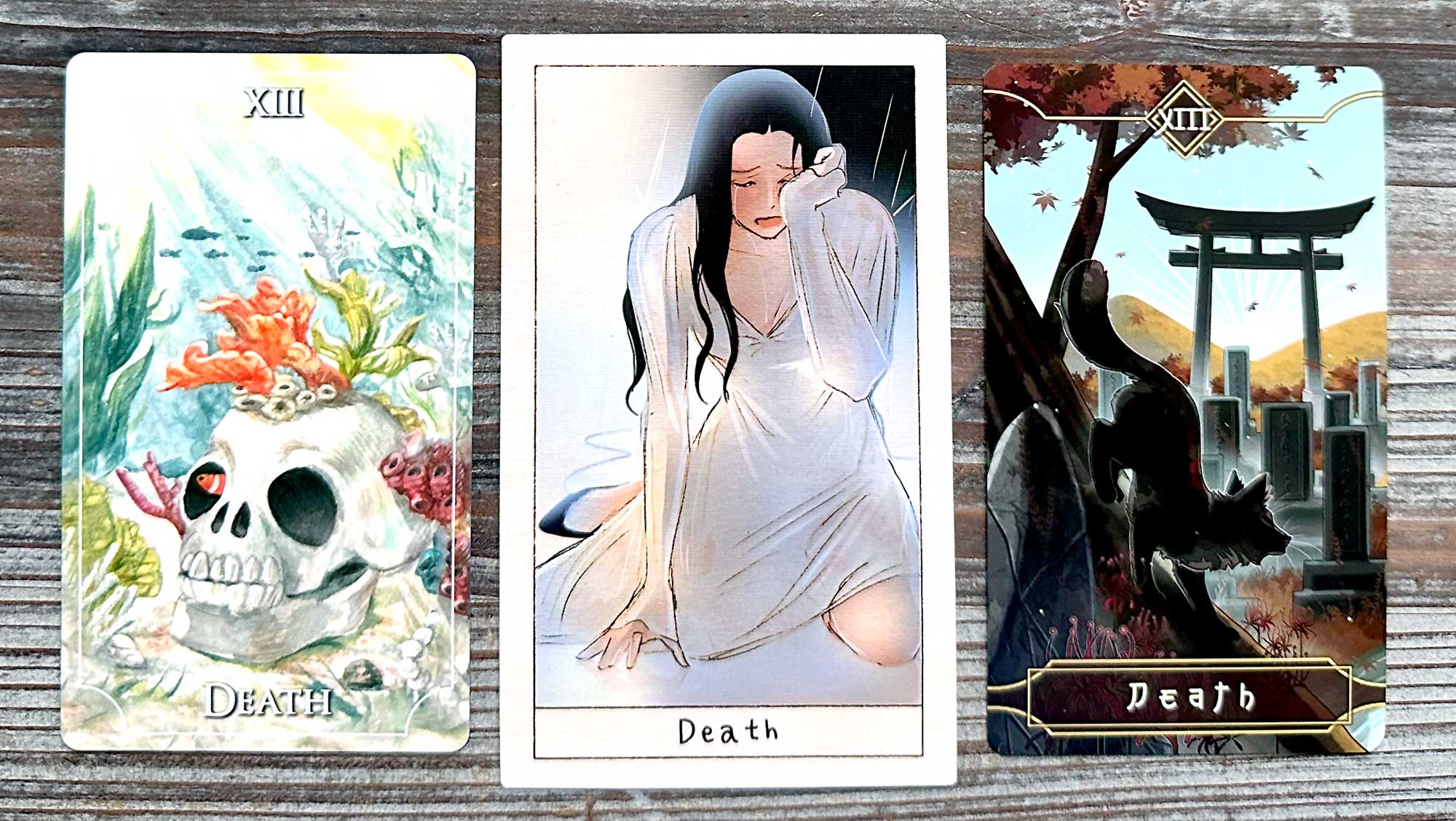 Prompt: “Pull the Death card from your deck(s). Compare the imagery between the card provided below and the card(s) from your own deck(s). How would you read them differently and why?”