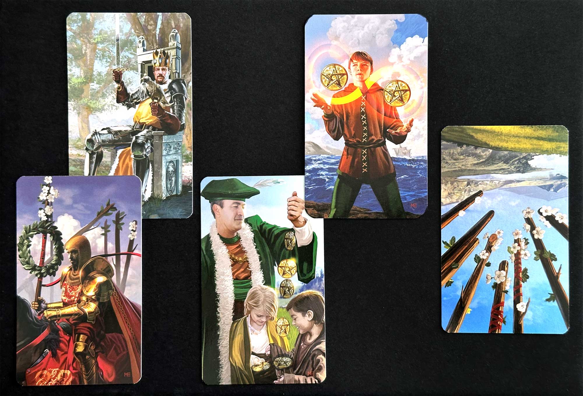 Six of Wands atop King of Swords – She’s trying to keep the realm going by plating the lead with others in writing and storytelling. He is, in fact, a wordsmith, and does very well at keeping everyone happy and entertained.