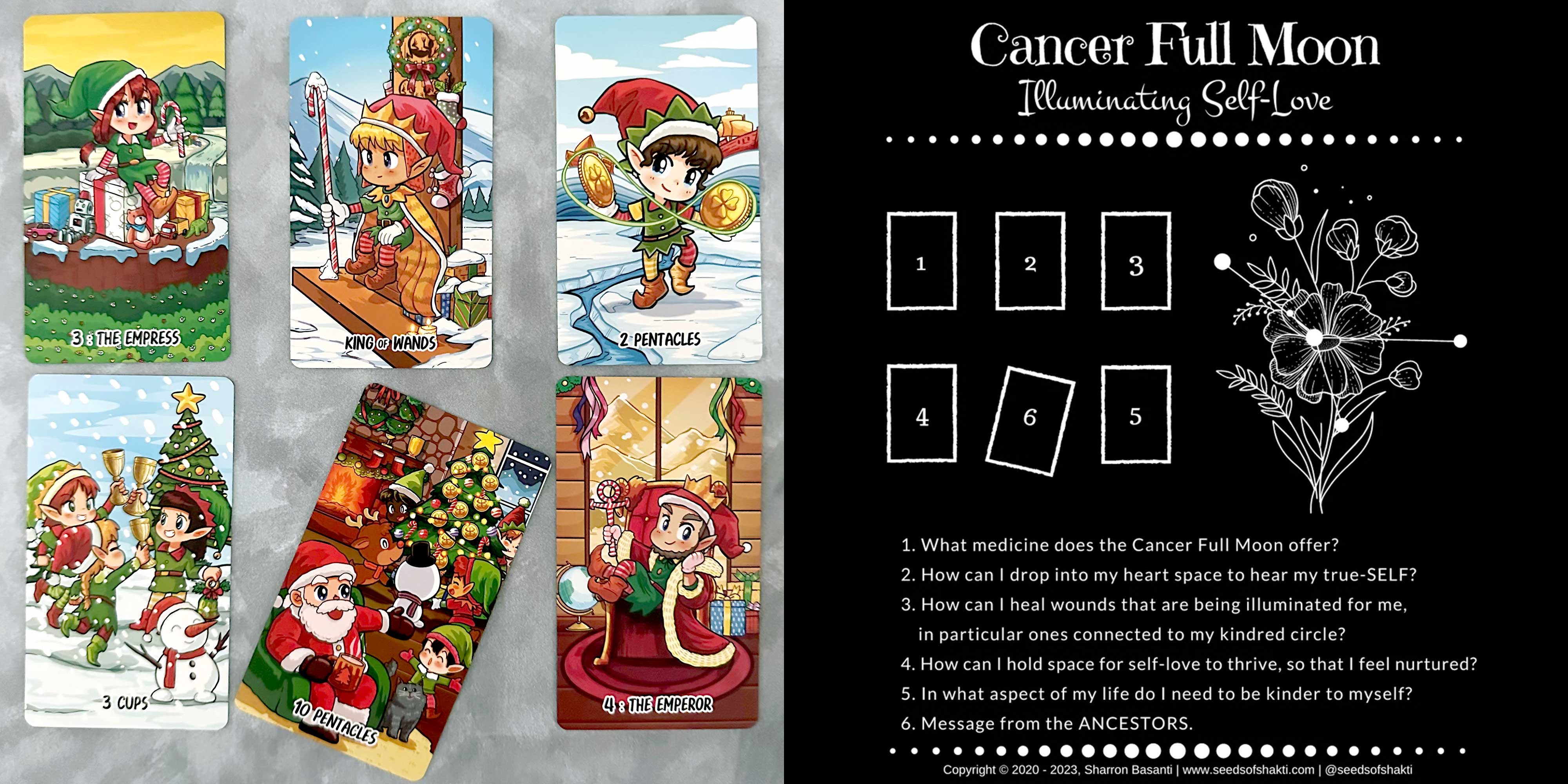 Later today is the full moon, and like all new moons and full moons, I did a spread aligned to the moon’s current themes as a part of my recognition of the moon’s cycle and influences upon us. Today’s full moon spread is provided by Seeds of Shakti.