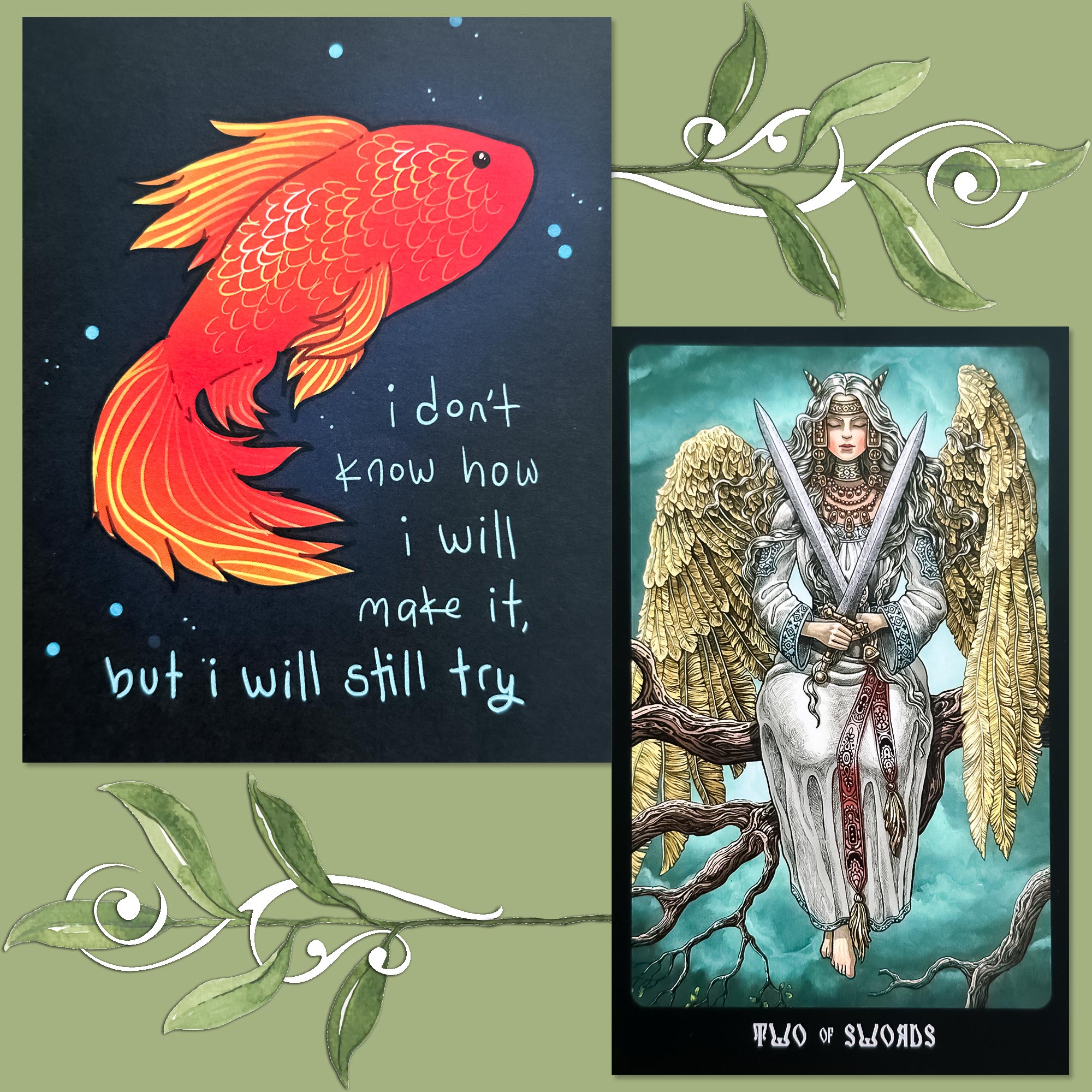 Today’s draw is the Two of Swords combined with the affirmation “I don’t know if I will make it, but I will still try.”