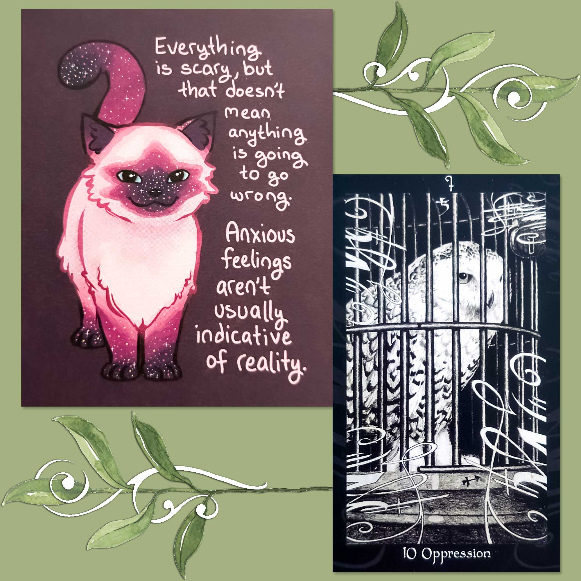Today’s draw is the Ten of Wands combined with the affirmation “Everything is scary, but that doesn’t mean anything is going to go wrong. Anxious feelings aren’t usually indicative of reality.”