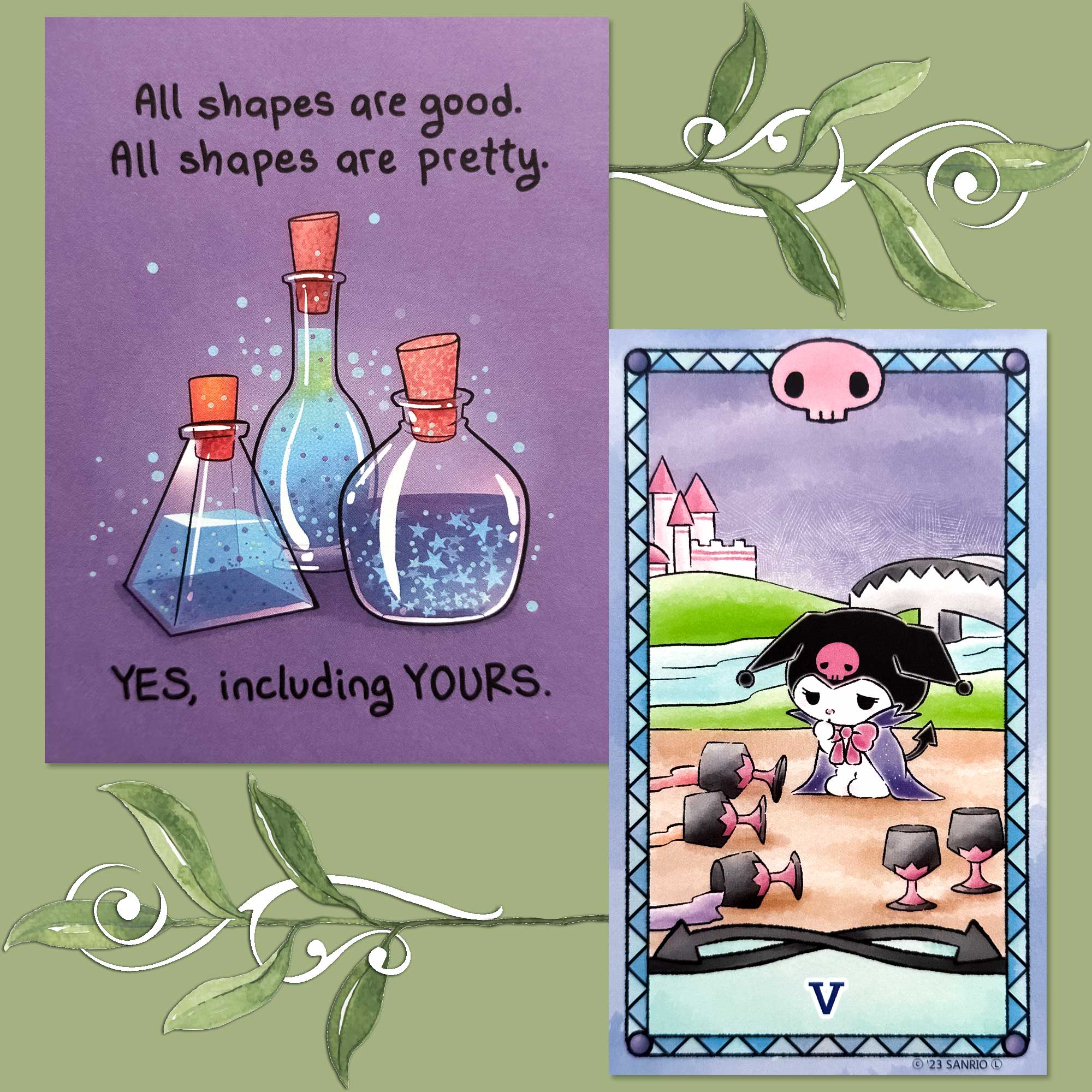 Luna's Kuromi Tarot's Five of Cups and It’s Going To Be Okay 2024 Day-to-day Calendar By Kate AllanToday’s draw is the Five of Cups combined with the affirmation “All shapes are good. All shapes are pretty. Yes, including yours.”