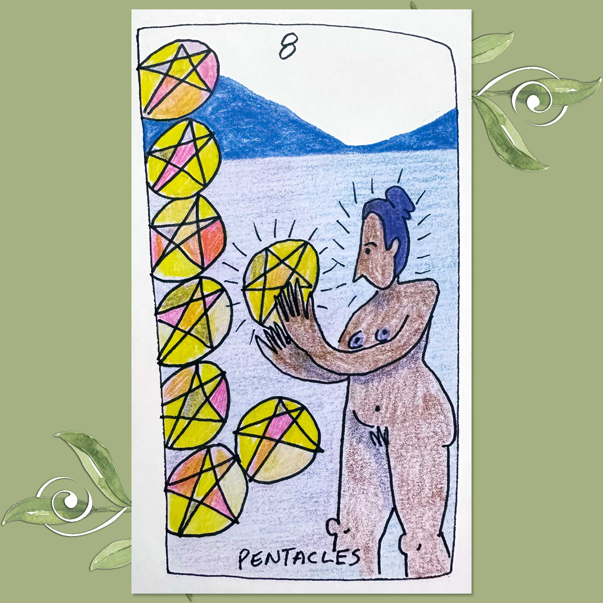 Everybody's Tarot - Eight of PentaclesEight of Pentacles – I love my work.