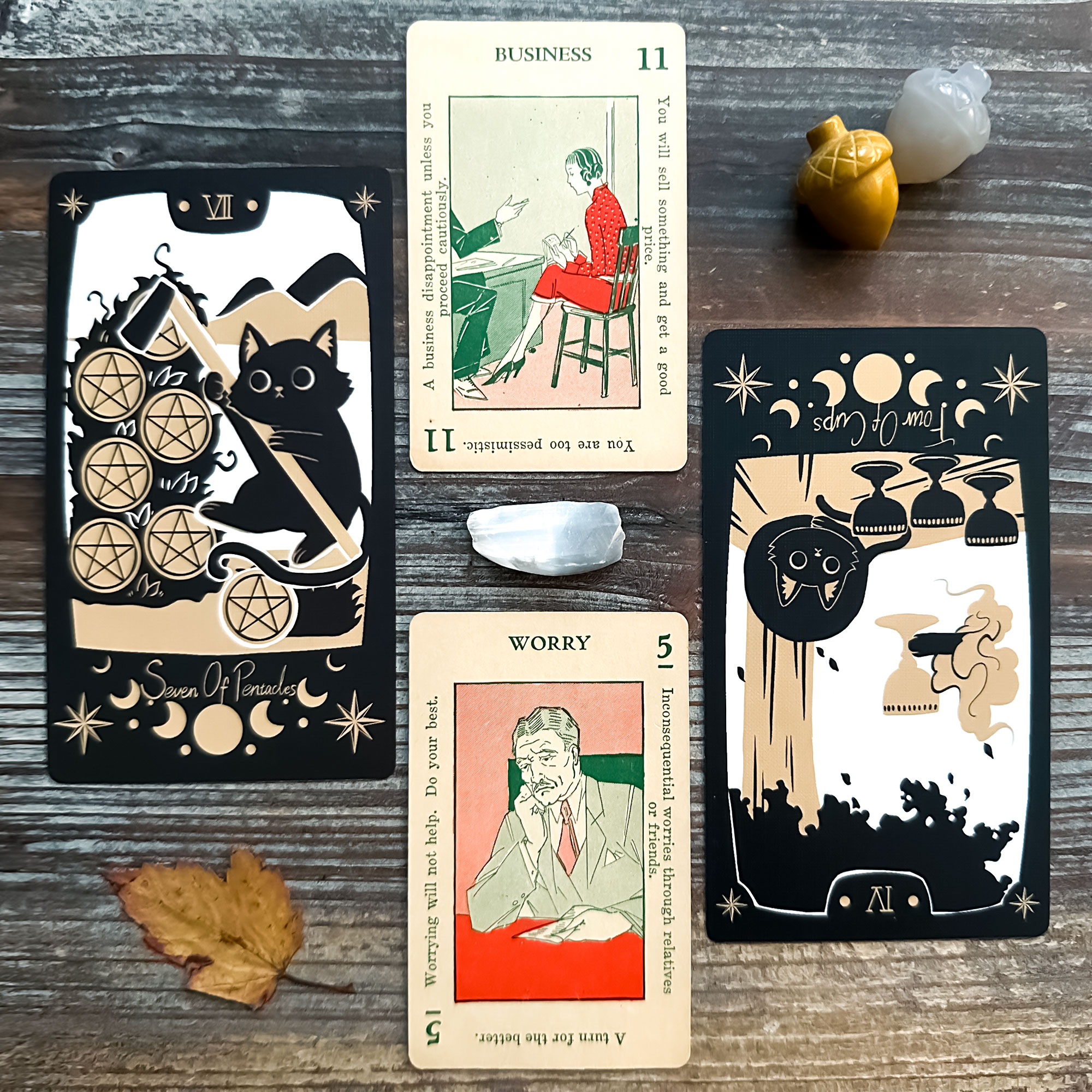 DECK USED: ADORABLE CAT TAROT AND GYPSY LORE FORTUNE TELLING CARDS c.1930