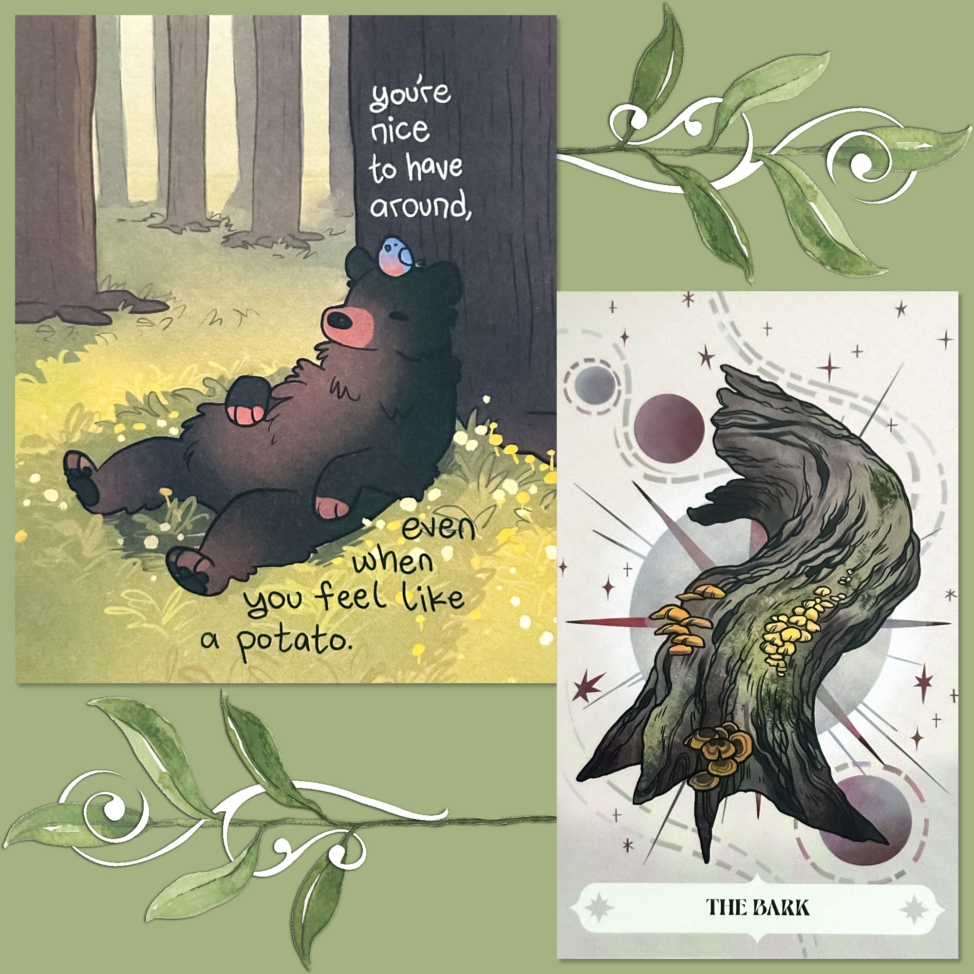 Today’s draw is The Bark card combined with three affirmation “You’re nice to have around, even when you feel like a potato.”