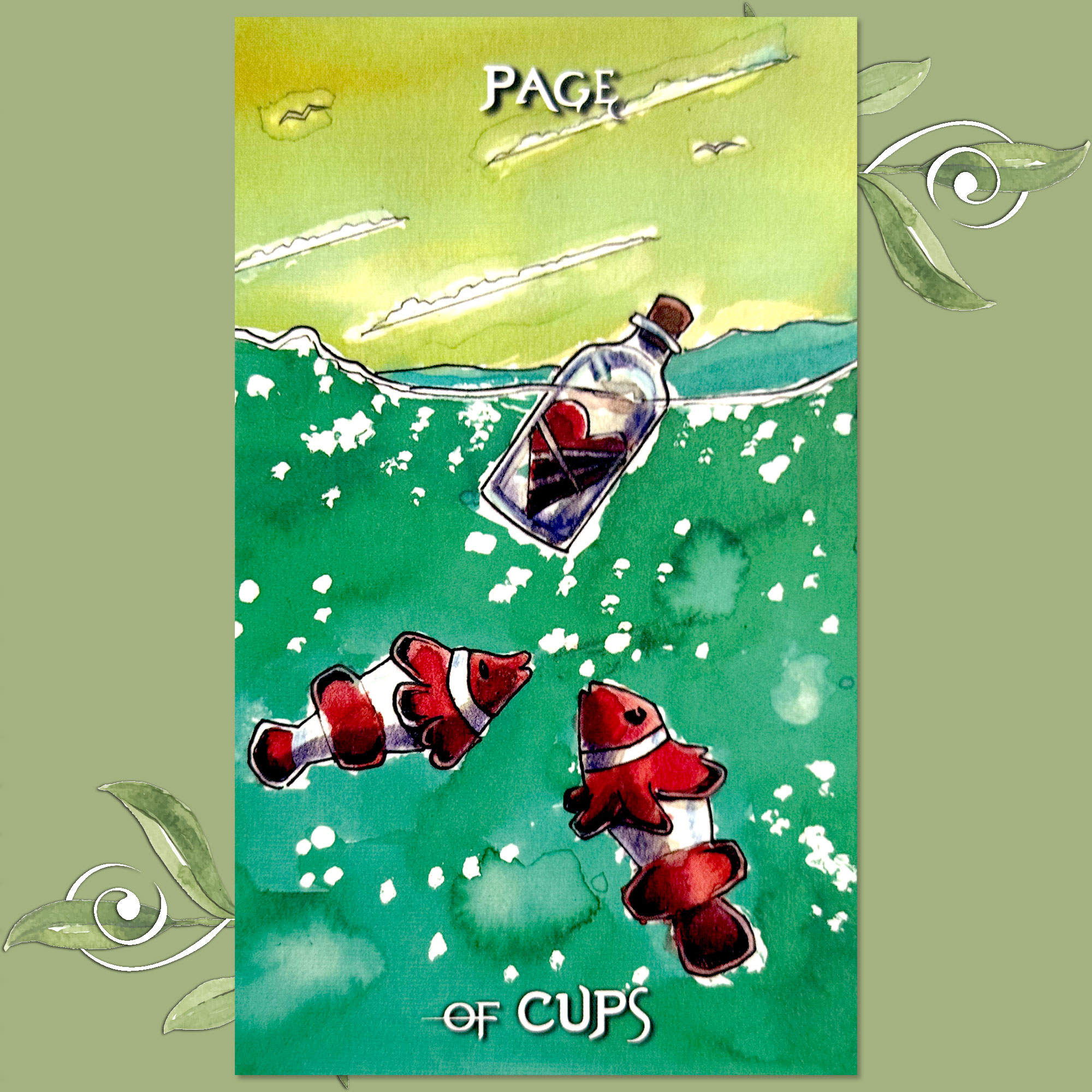 Today’s draw is the Page of Cups, which is traditionally a representation of a receptive omega energy, personality, or person in the area of one’s emotions, relationships, creativity, or intuition. This often translates into themes that have to do with emotional growth, second chances relationships, or exploring one’s creative pursuits.