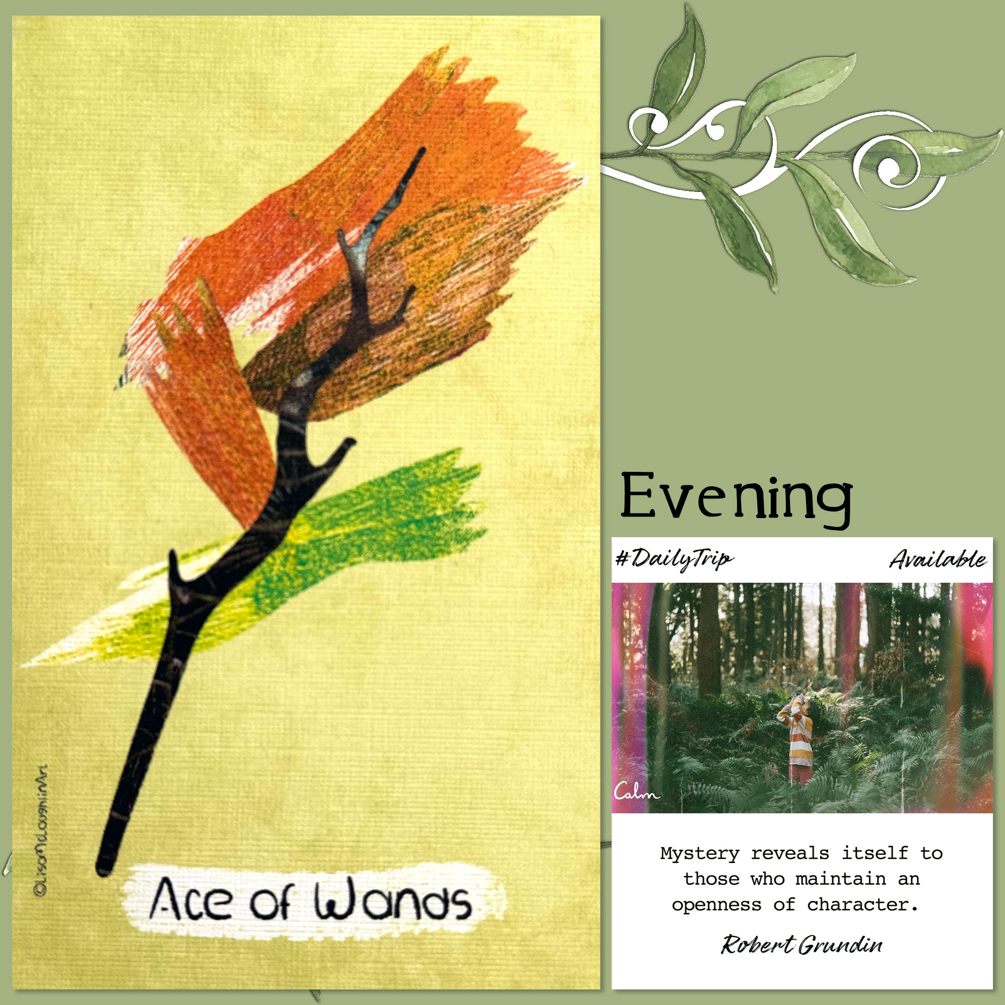 Today’s draw is the Ace of Wands, which is traditionally a representation of the seed, start, or new beginnings in the area of one’s passion projects, inspiration, drive, willpower, and determination. This often translates into themes that have to do with budding new interests and new passion projects.