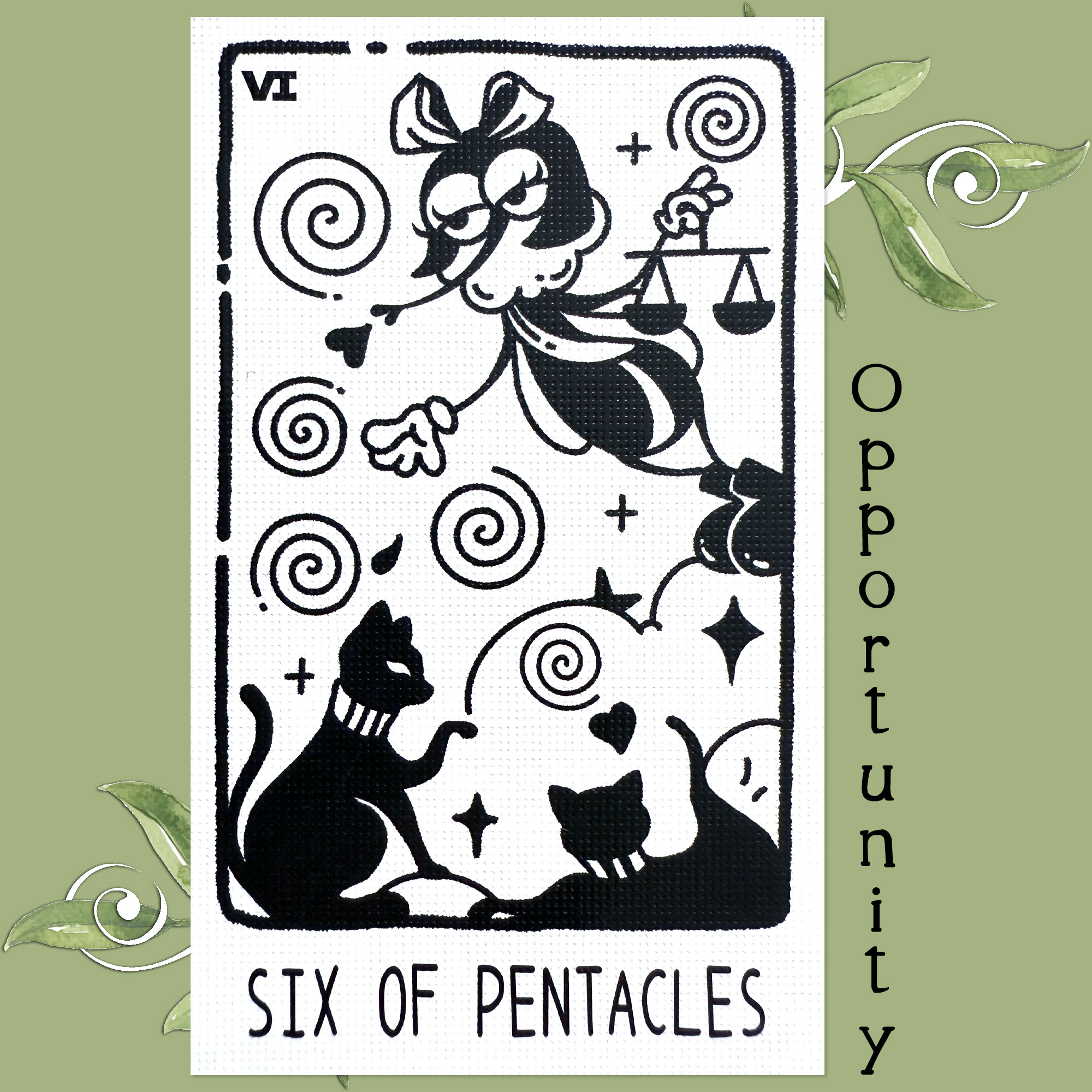 Today’s draw is the Six of Pentacles, which is traditionally a representation of charity, generosity, sharing the wealth, asking for or accepting help, and balancing the scales between the “haves” and the “have nots” in life.