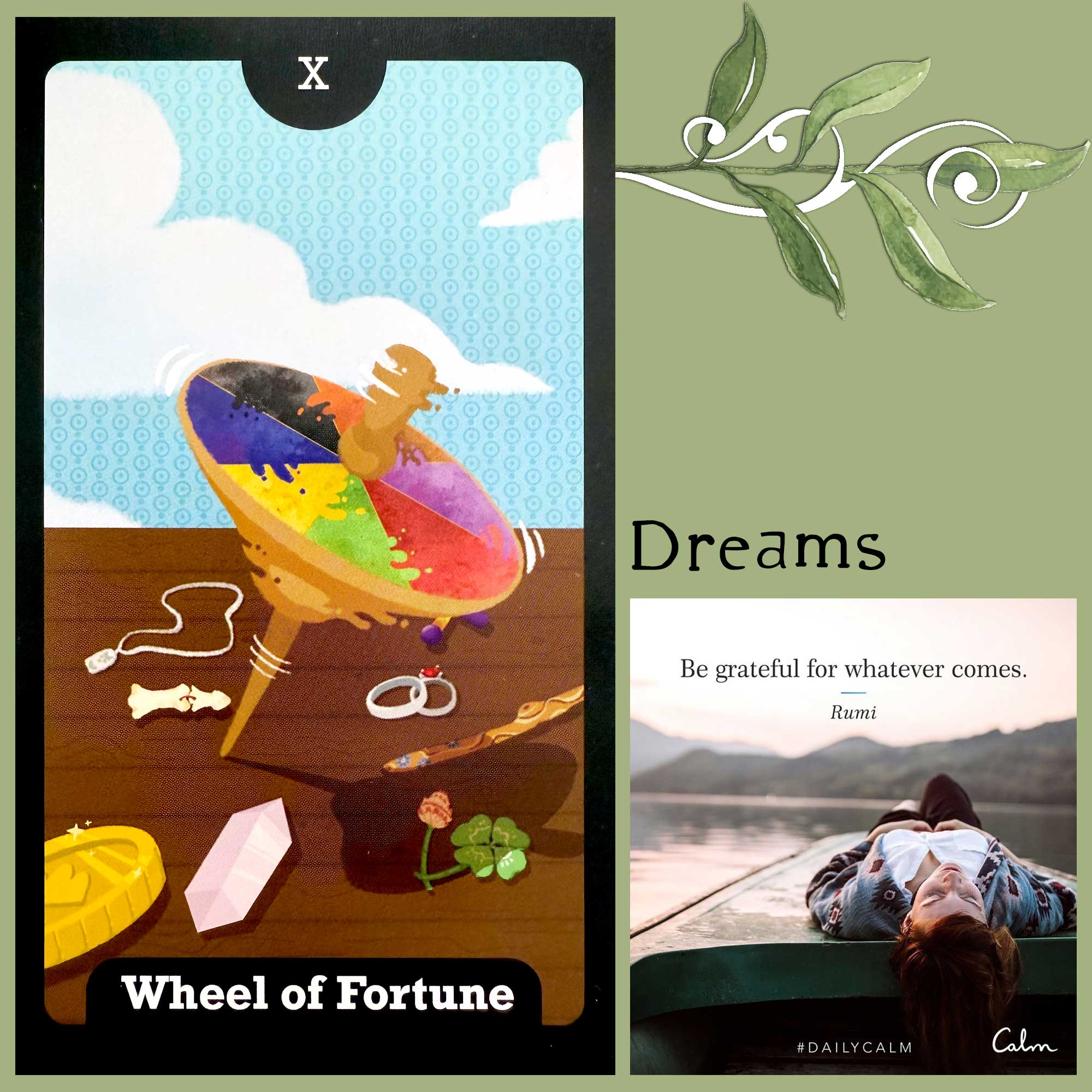 Today’s draw is the Wheel of Fortune, which is traditionally a representation of luck (both good and bad), changing circumstances, the ups and downs of life, and the cyclical nature of life and the world.