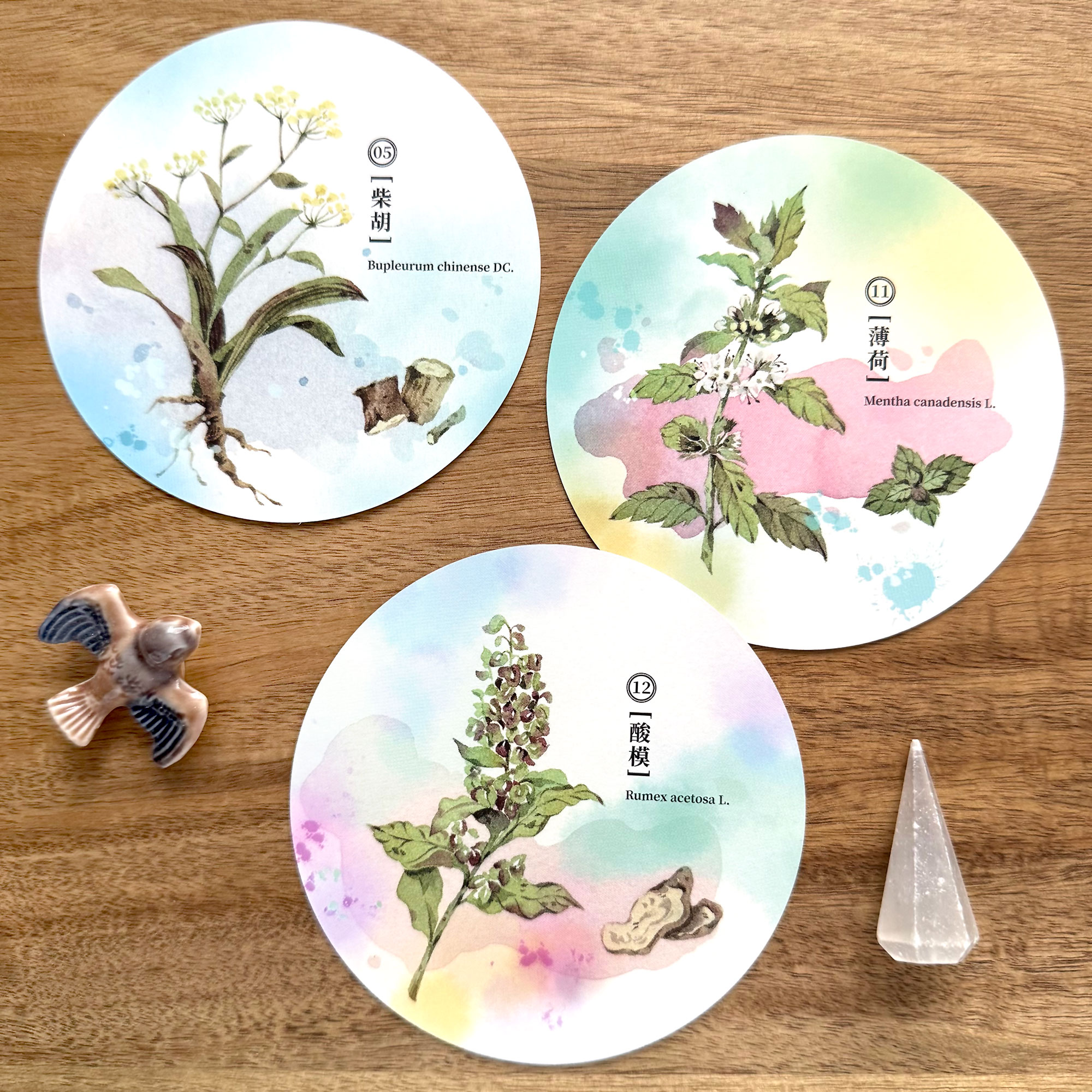 Reading Summary: The wisdom gifted to us by calm moments (Bupleurum chinense DC) of contemplation in a time of clarity (Mentha canadensis L) combined with love and caring for others well-being (Rumex acetosa L).
