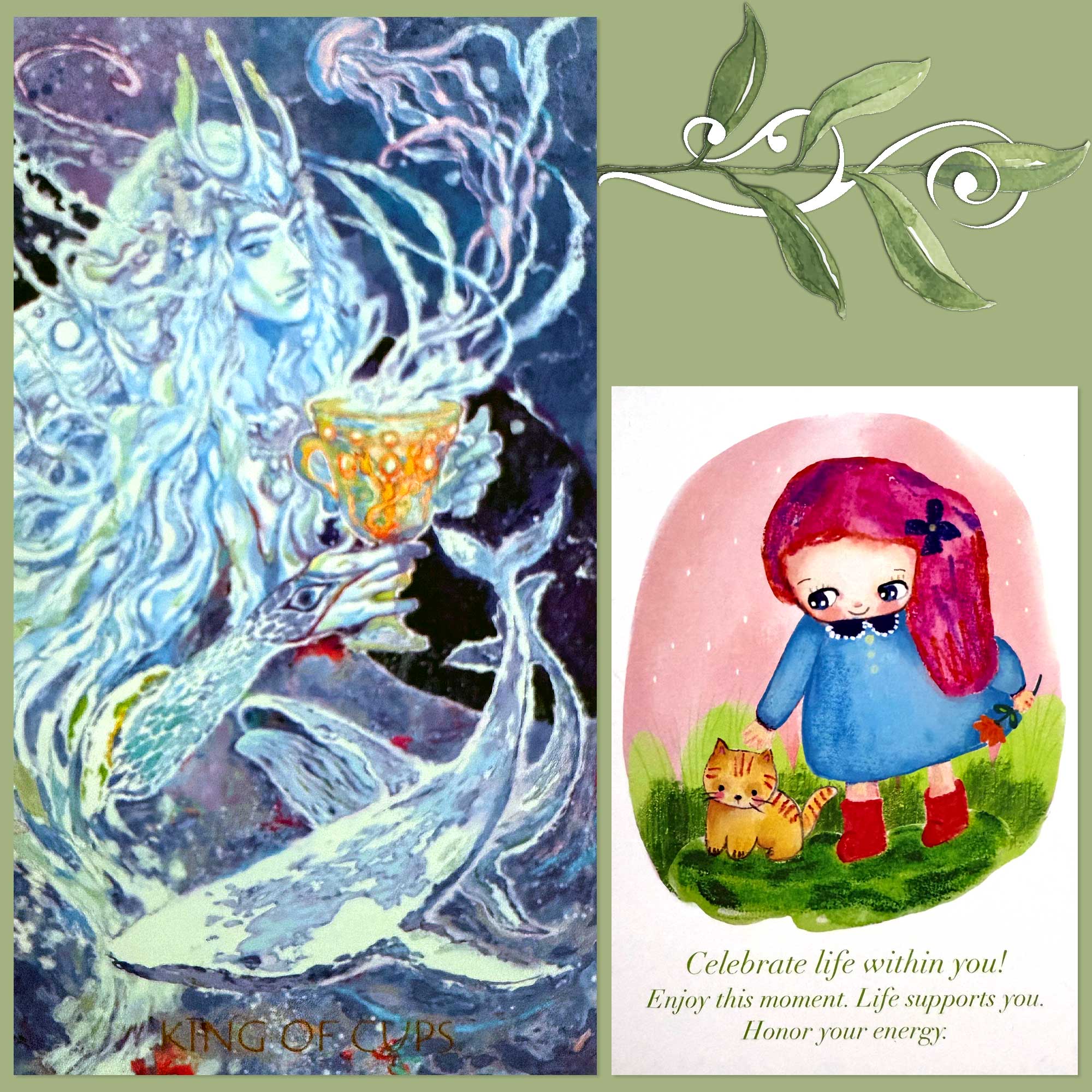 Today’s draw is the King of Cups, which is traditionally a representation of a projective alpha energy, personality, or person in the area of one’s emotions, relationships, emotional intelligence, creativity, or intuition. This often translates into authority figures that are emotionally supportive and understanding, possessing both compassion and strong leadership qualities.