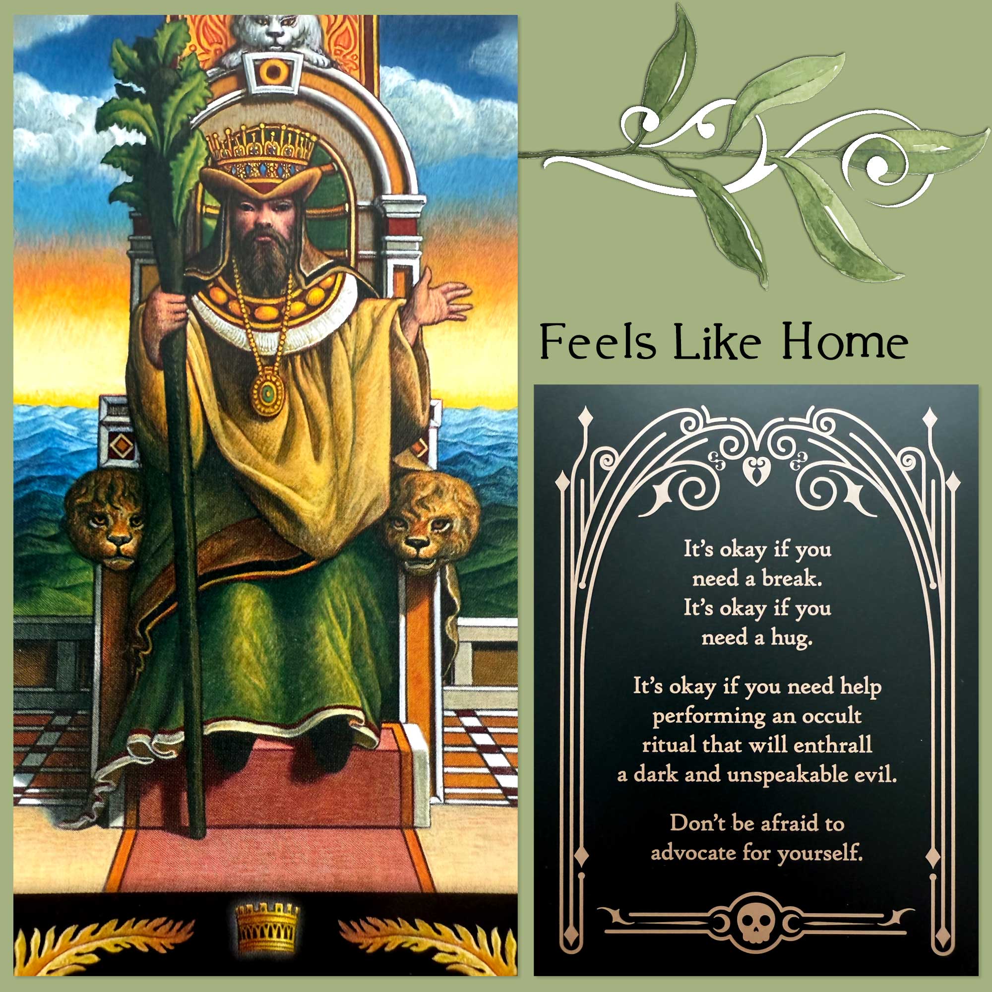The King of Wands is all about personal values, passionate endeavors, and using both to create a stable foundation to lead from. He is the epitome of the phrase “the world is your oyster”. Not that the journey he’s on is new, but that he has made it uniquely his and special. His perfect fit.